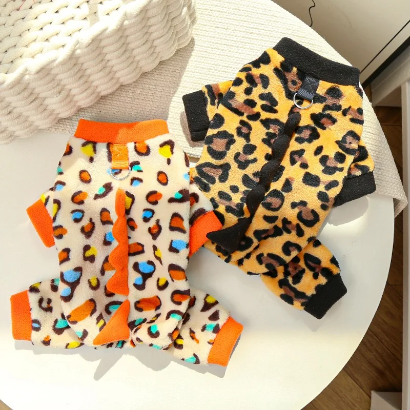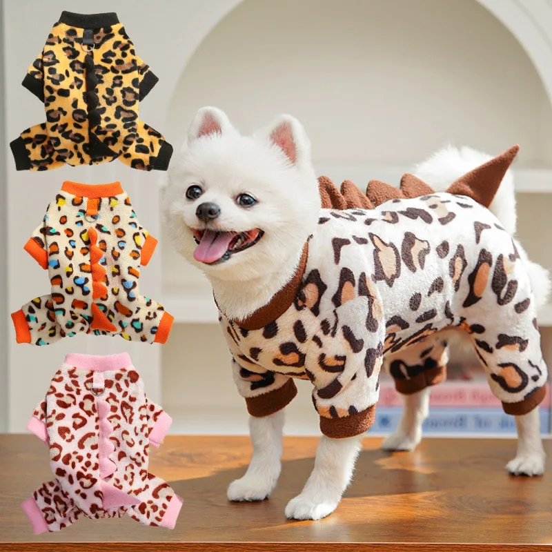 Ropa de franela de leopardo para perros, Cosplay de dinosaurio, monos de Chihuahua para gatos, Halloween, Navidad, Año Nuevo, ropa de invierno para cachorros