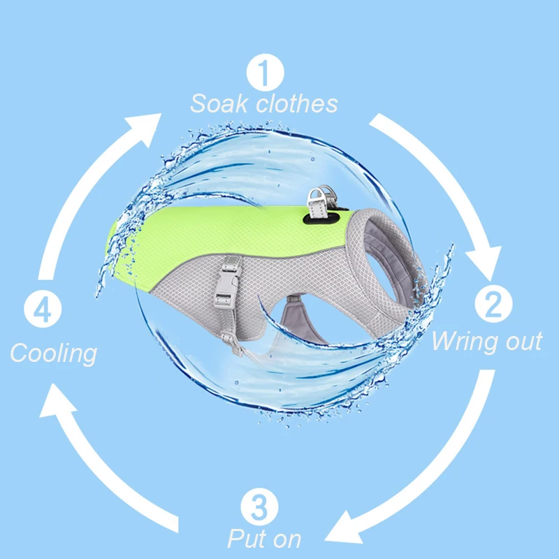 Antes de salir, vierta agua sobre este traje fresco de verano y exprime el exceso de agua. Luego ponlo en el perro. Debido a que hay algodón absorbente grueso en el interior y la parte posterior está hecha de material impermeable, el agua no se pierde fácilmente y seguirá dando al perro una sensación de frío.