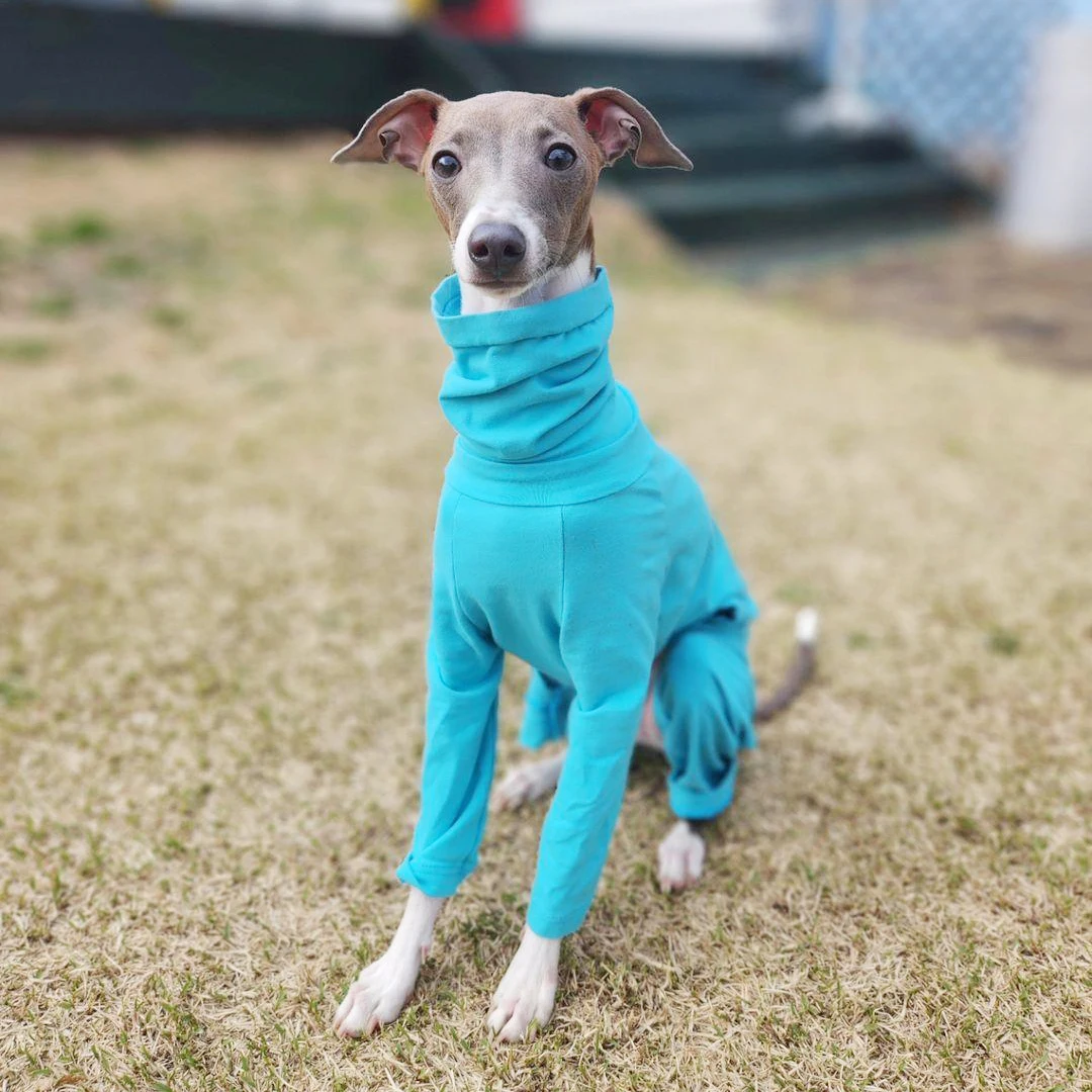 Ropa para galgo italiano, camisa azul de algodón de 4 patas para Whippet, abrigo de cuello alto para Wellington en disfraz de perros medianos de primavera