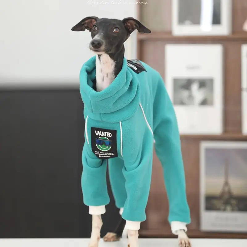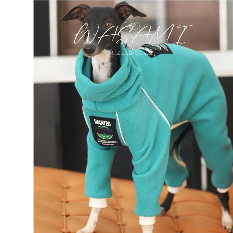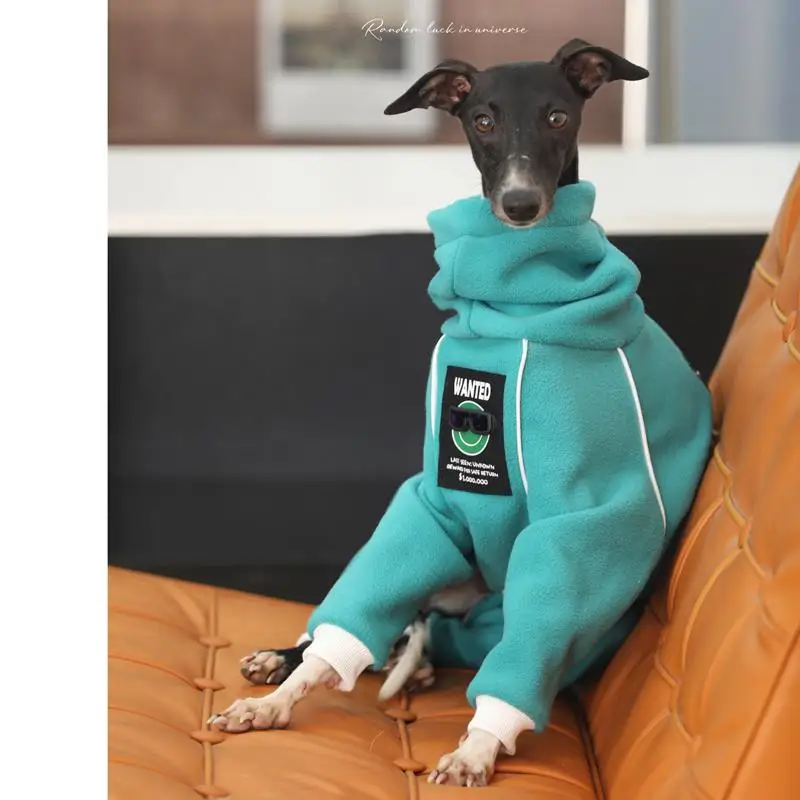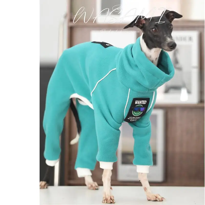 Ropa de color gris italiano de moda, fleece suave elástica azul, Whippet, ropa de perro de 4 patas, ropa cálida de color gris en invierno