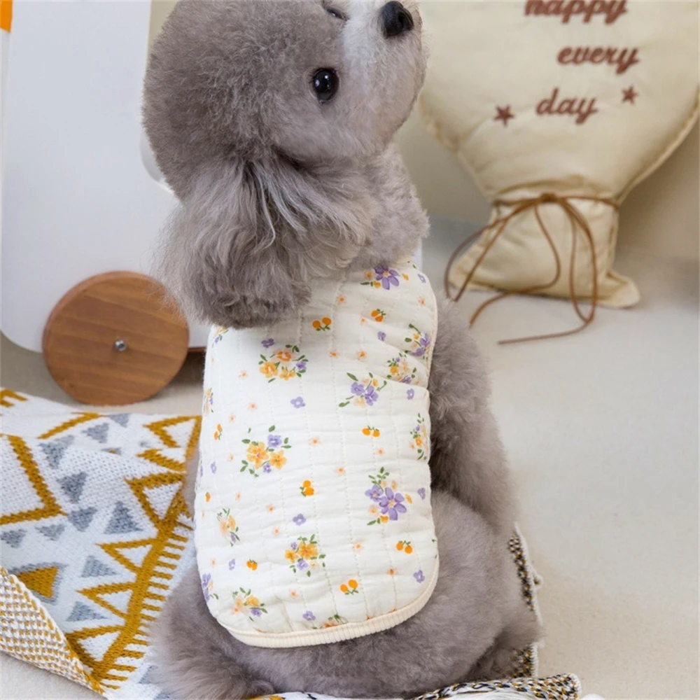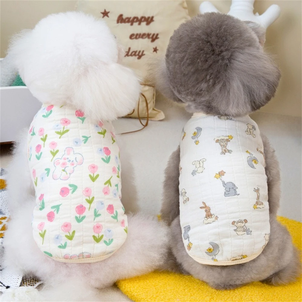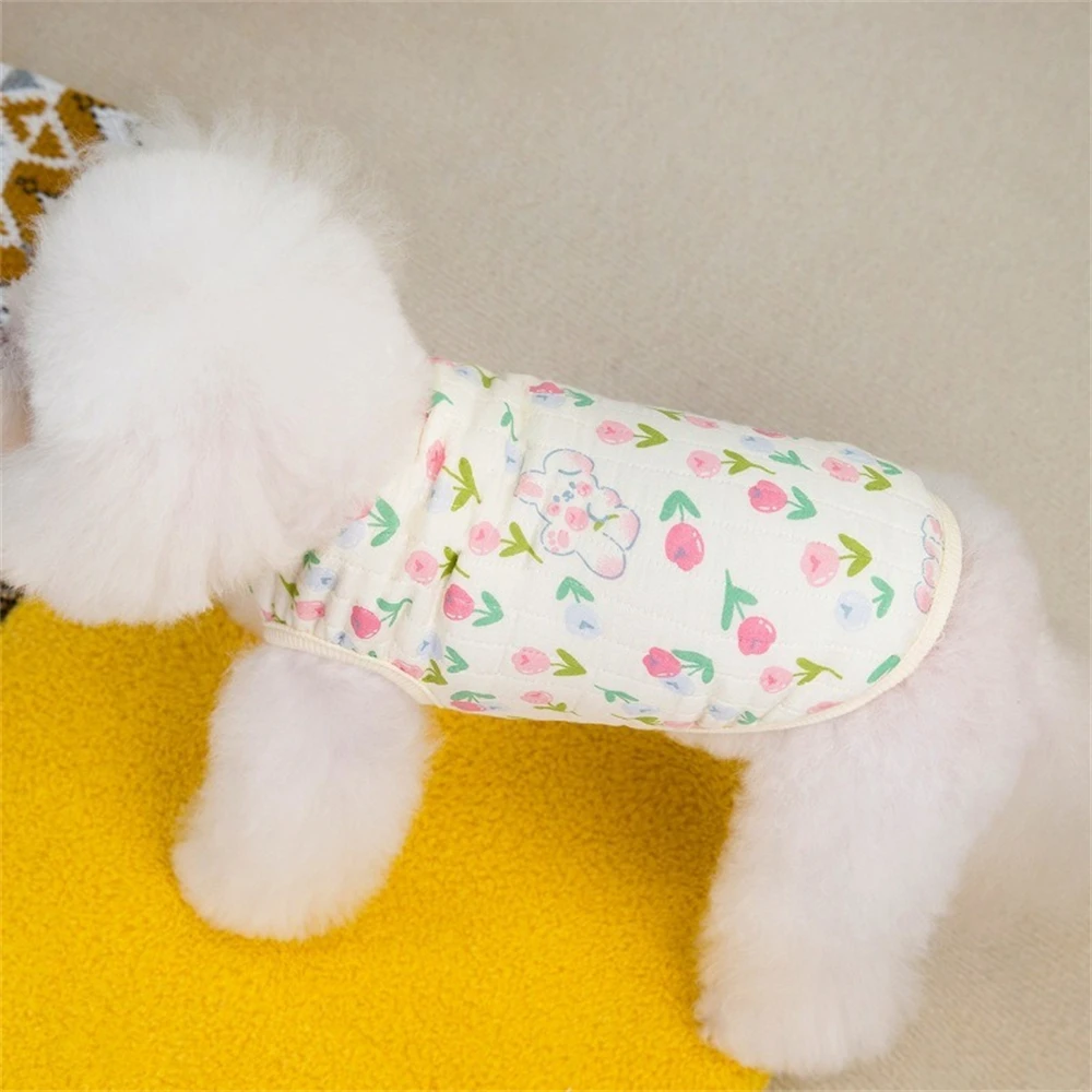 Ropa de gato de hilo de algodón, chaleco de tulipán Floral dulce, sudadera para Bulldog Francés, abrigos antiestáticos de primavera para perros pequeños y medianos