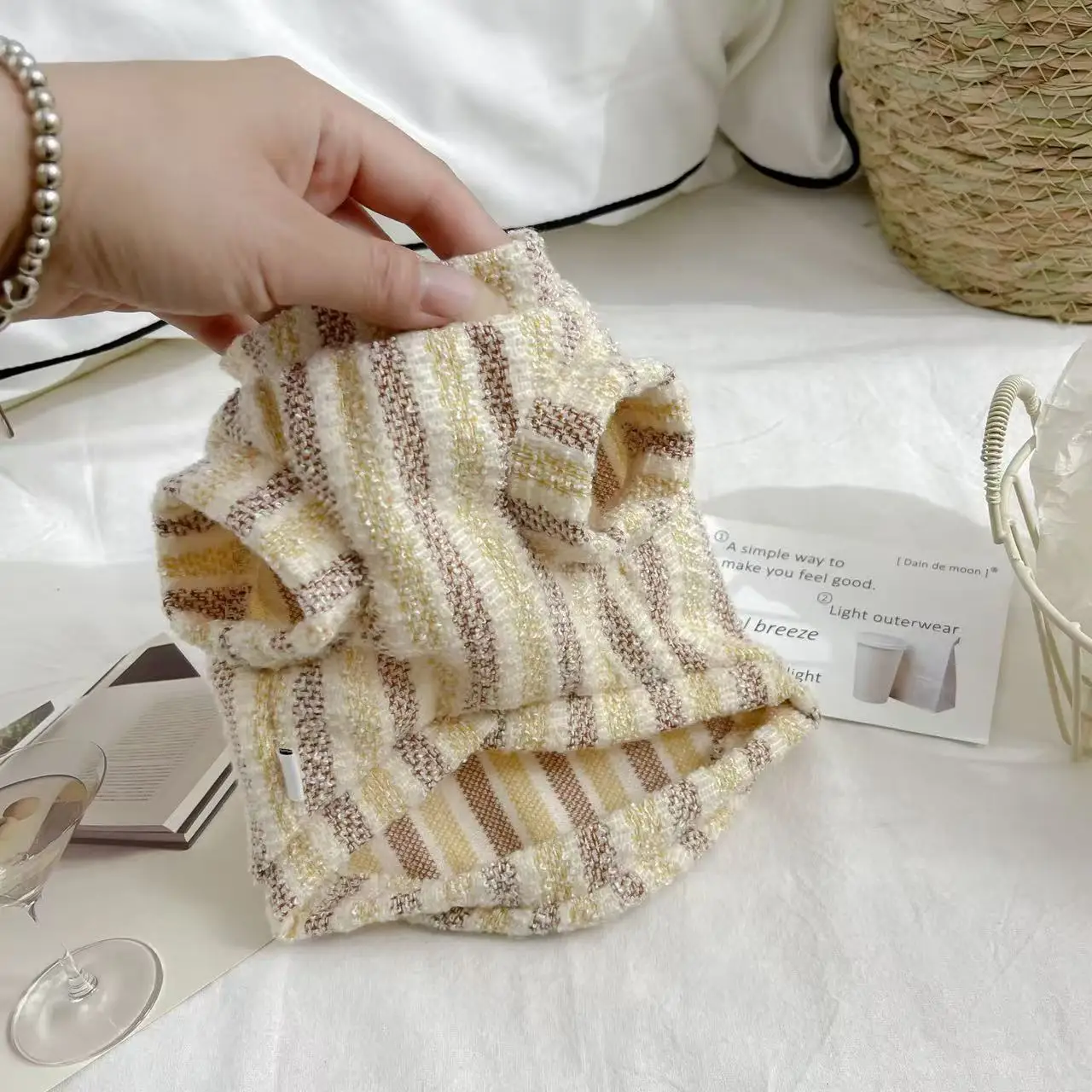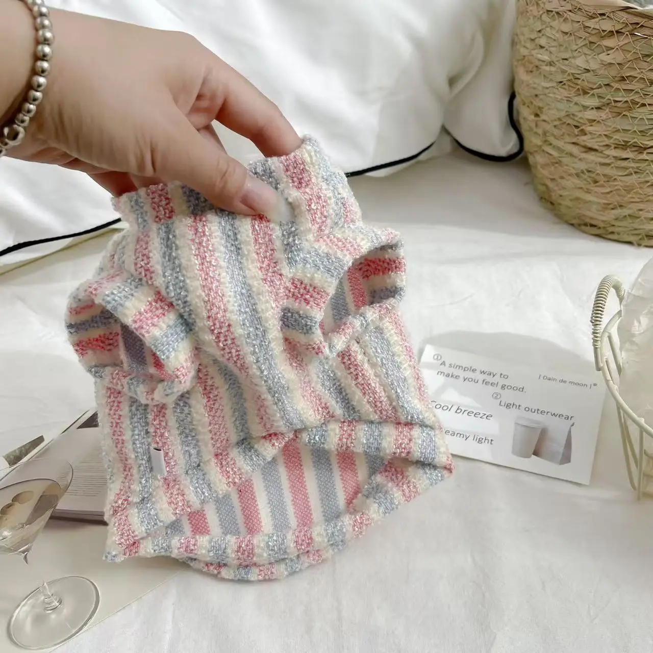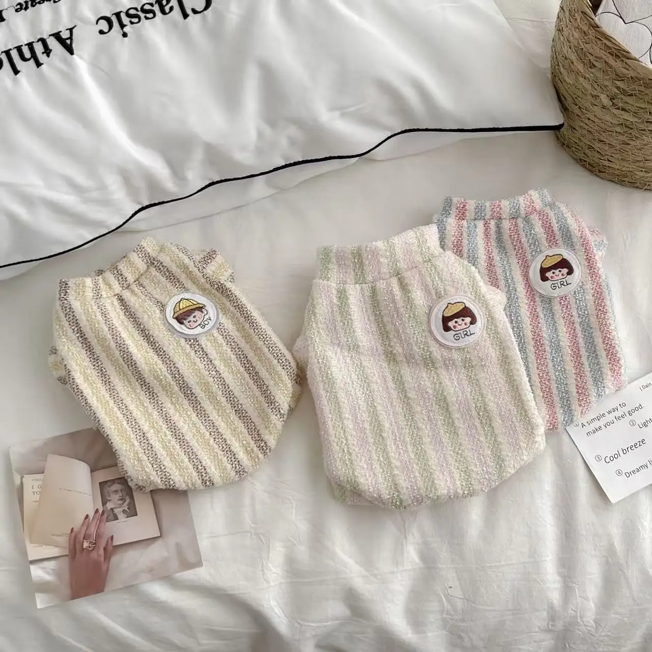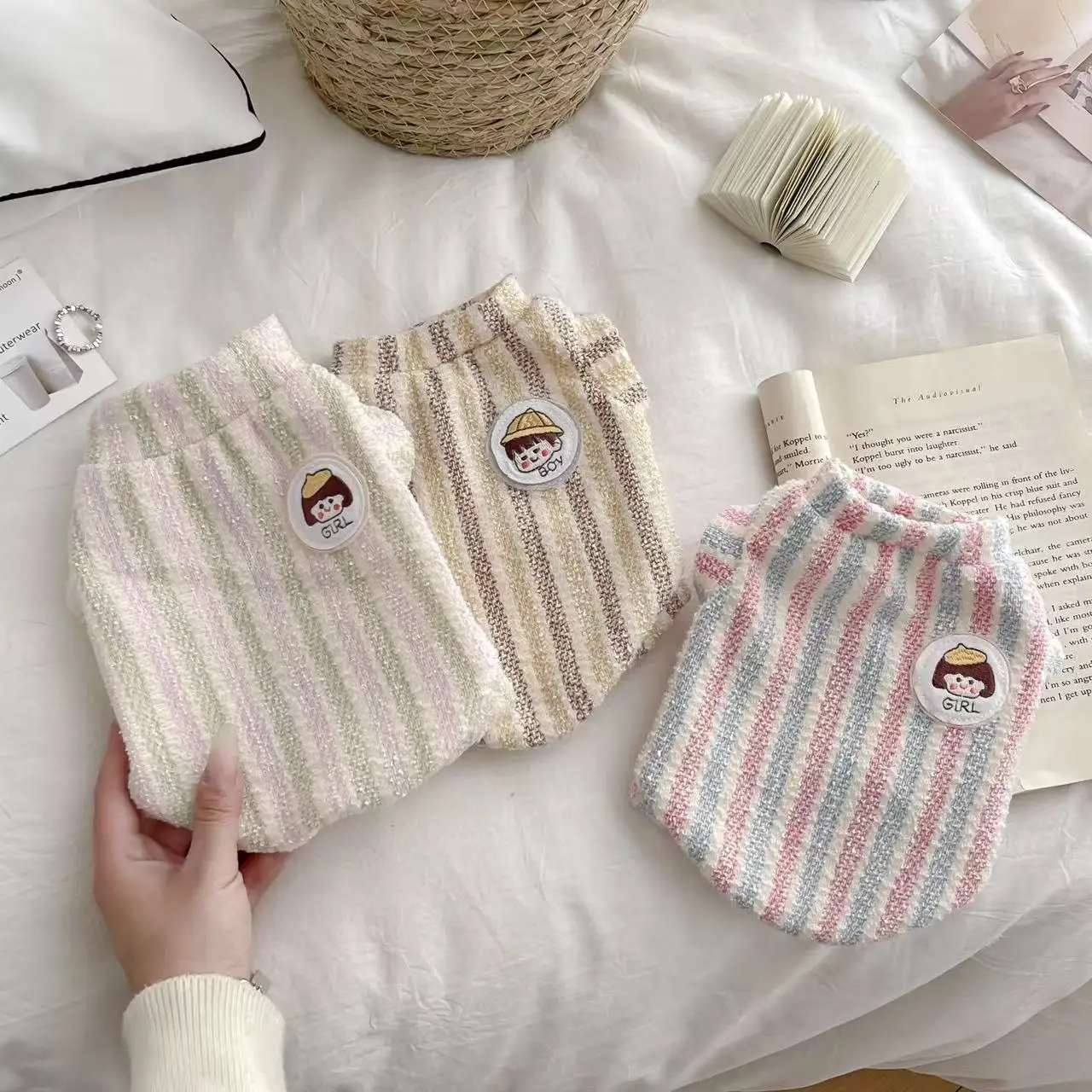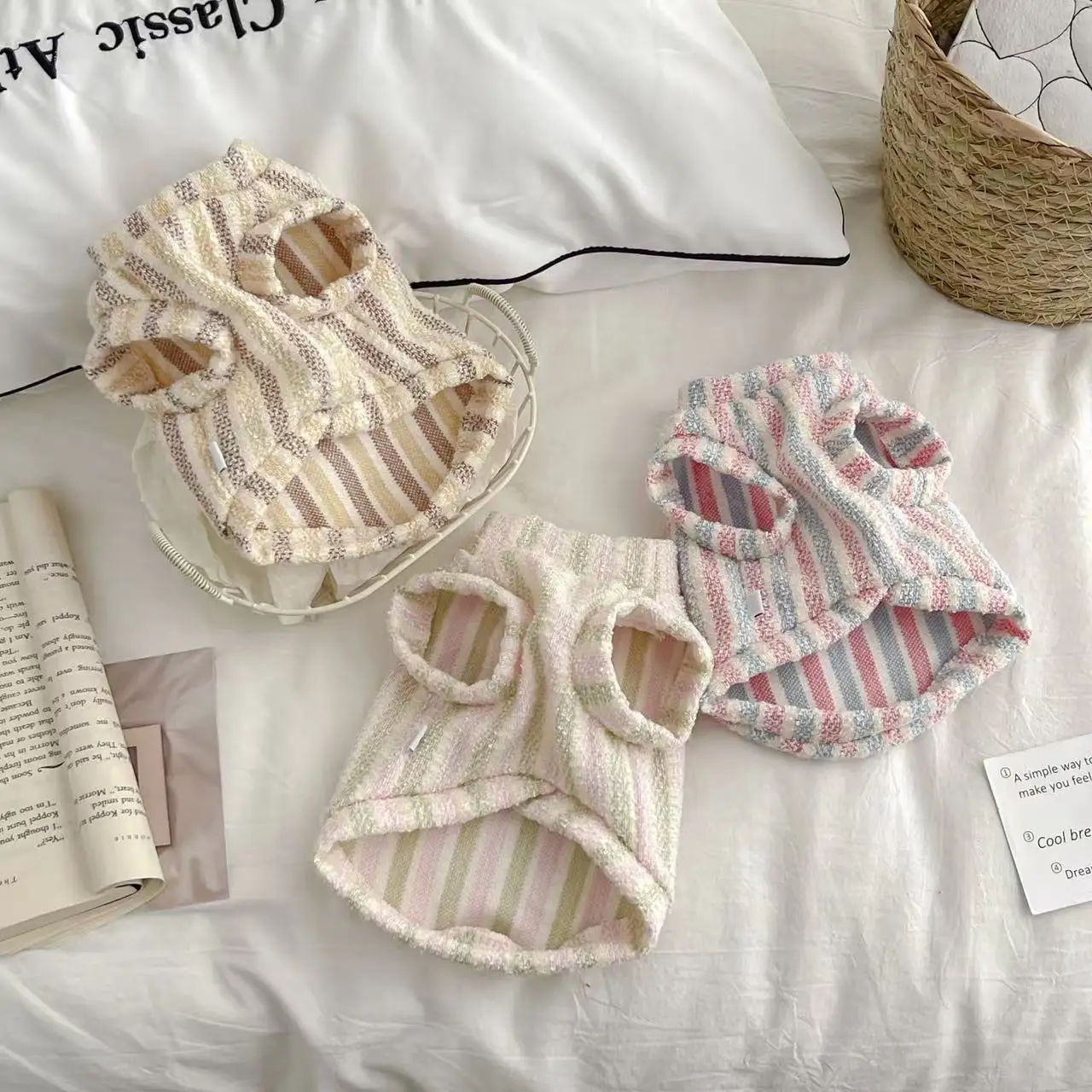Ropa de gato de manga corta con rayas coloridas para mascotas, ropa suave y transpirable para cachorros de dibujos animados, primavera y verano