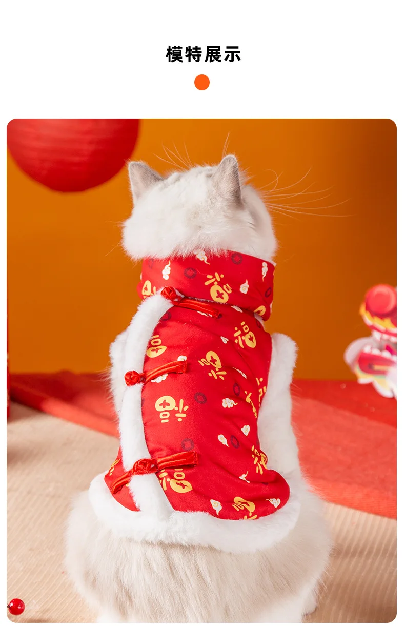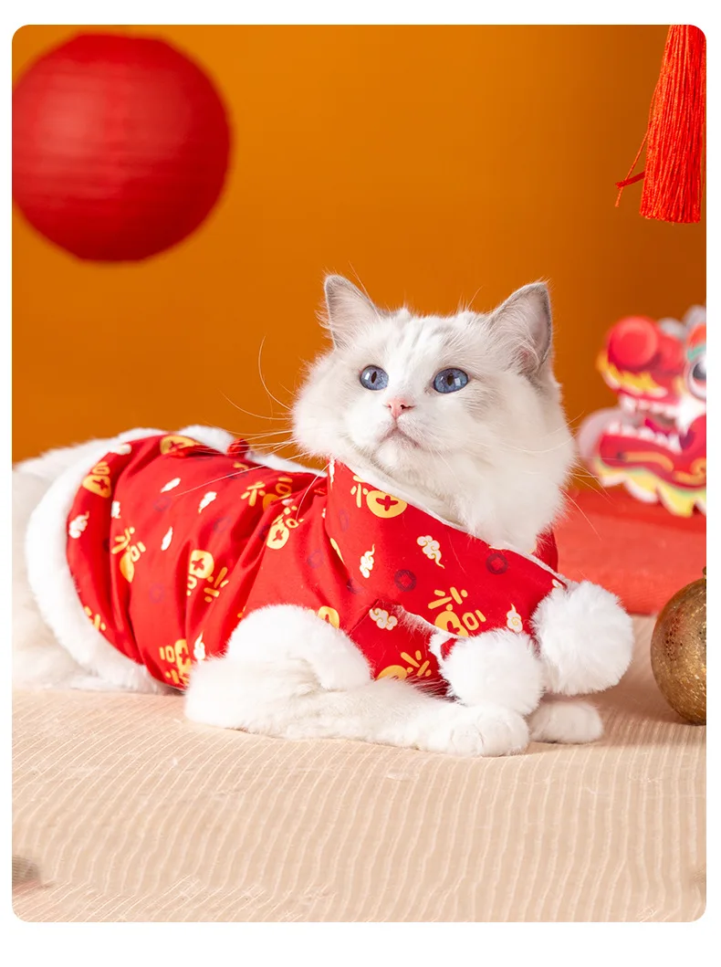 Ropa para gatos, bendición de Año Nuevo, estampado completo, festivo, Año Nuevo Chino, chaleco bípode para perros y gatos, ropa cálida gruesa de terciopelo para mascotas