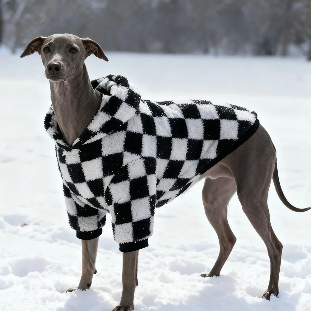 Ropa grande para perros, sudaderas con capucha a cuadros para mascotas, abrigo de lana de galgo italiano Whippet, suéteres de tablero de ajedrez Doberman de invierno, pijamas nuevos 2026