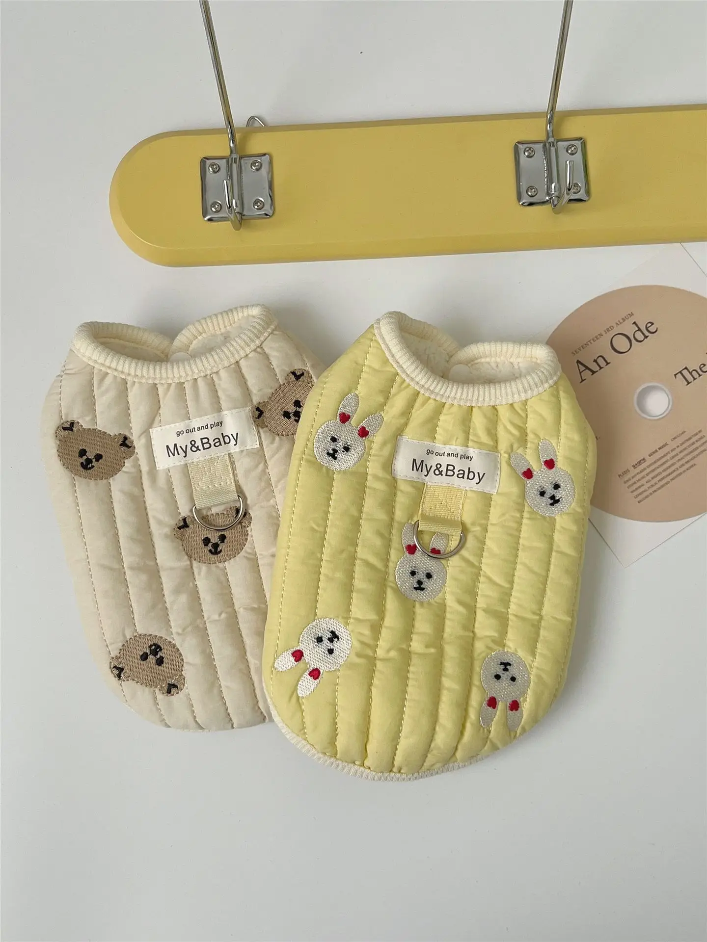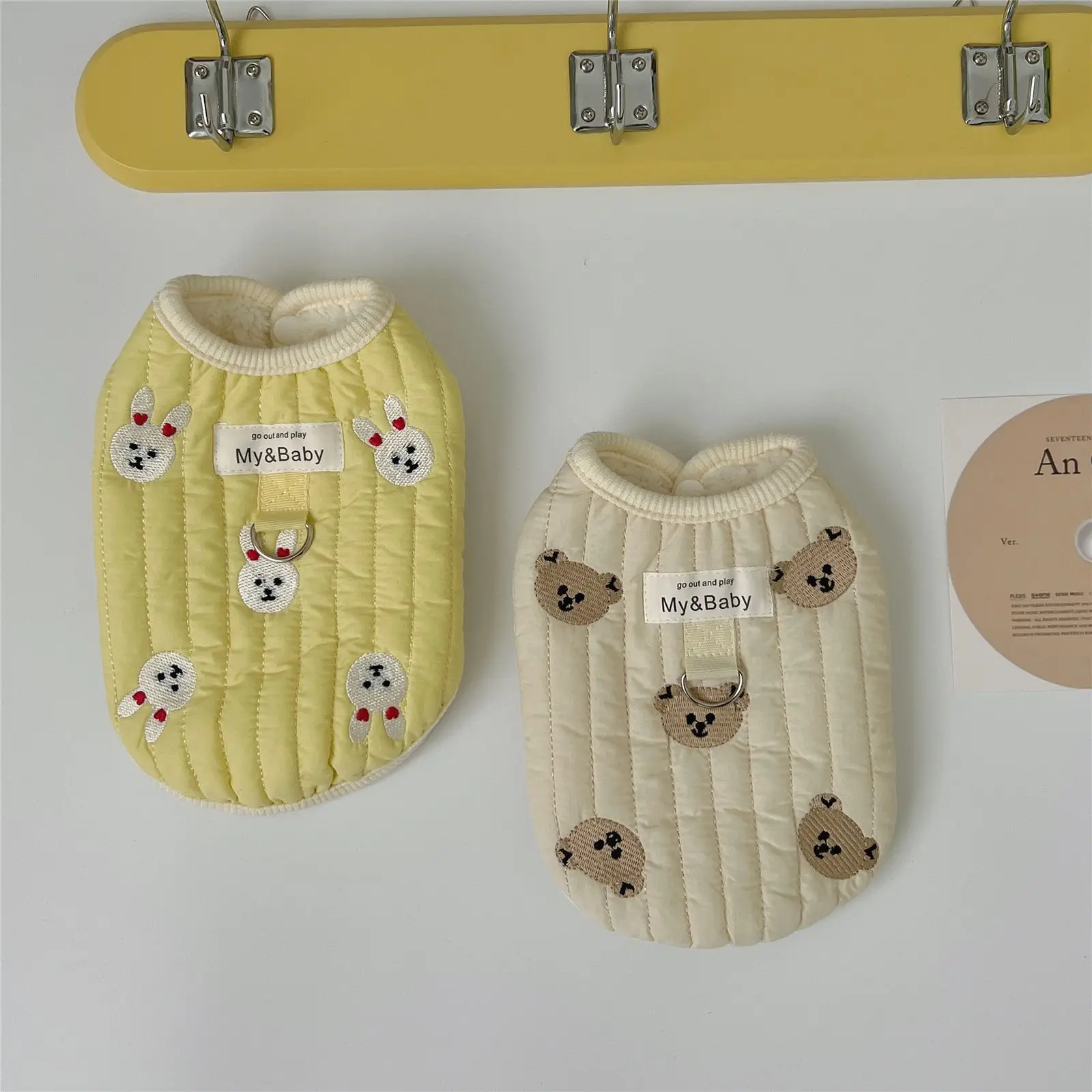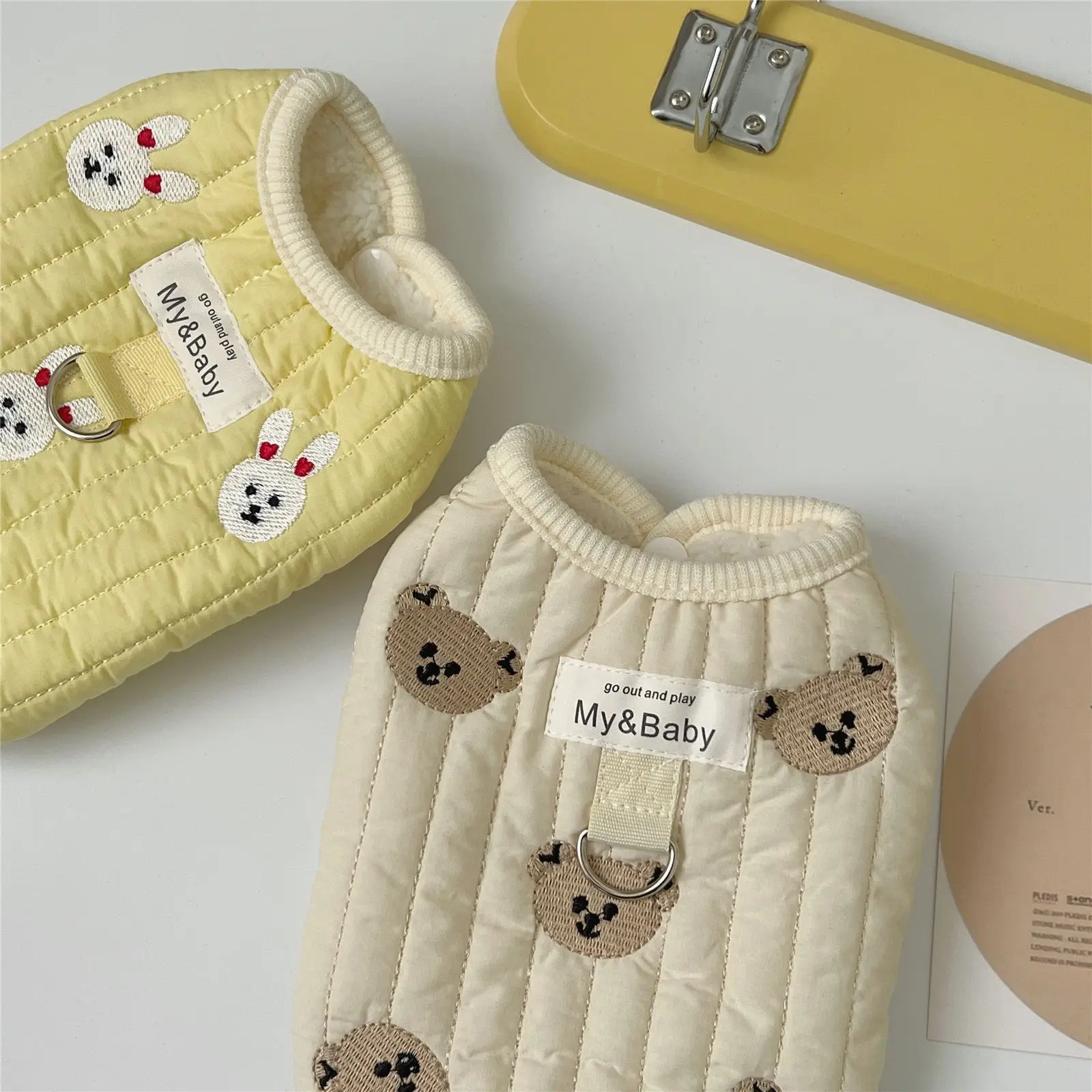 Ropa gruesa de invierno para mascotas, chaleco de terciopelo sin mangas con estampado de dibujos animados, oso, conejo, abrigo para mascotas, disfraz para perros, nuevo