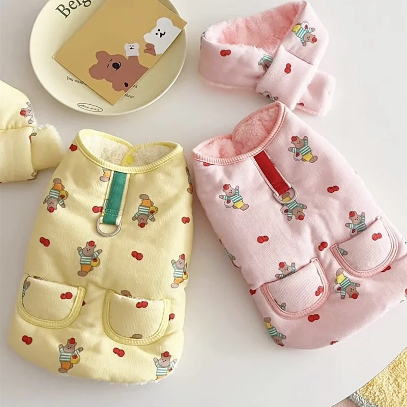Ropa gruesa de invierno para perros, chaqueta con estampado bonito para perros, chaleco a la moda para cachorros, abrigo, chaqueta suave y cálida para gatos, trajes para mascotas Chihuahua