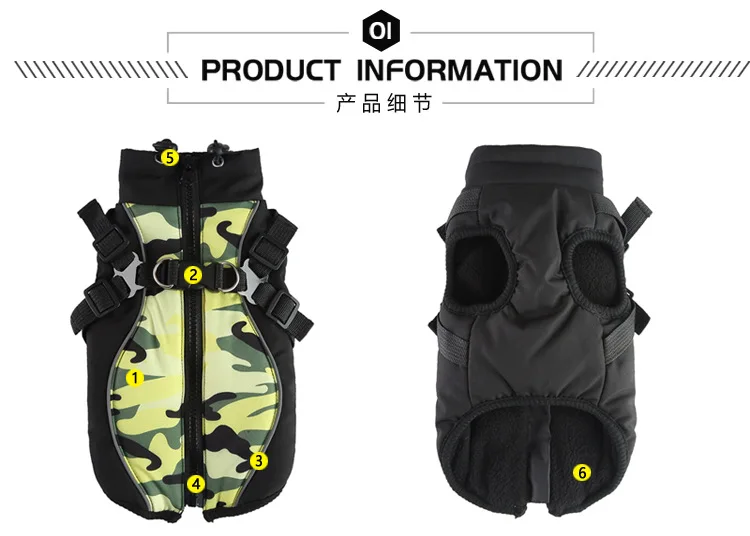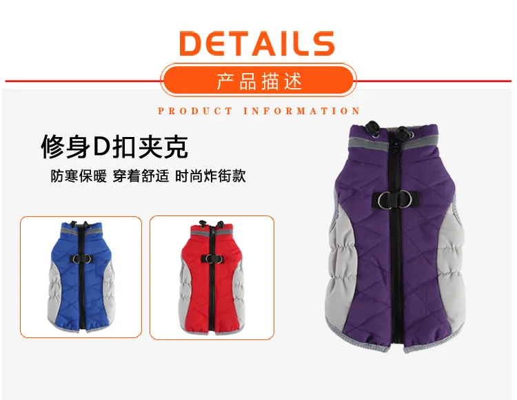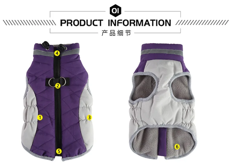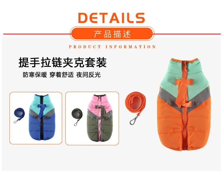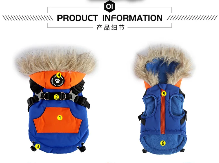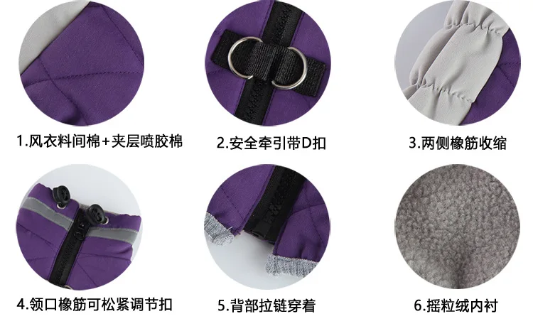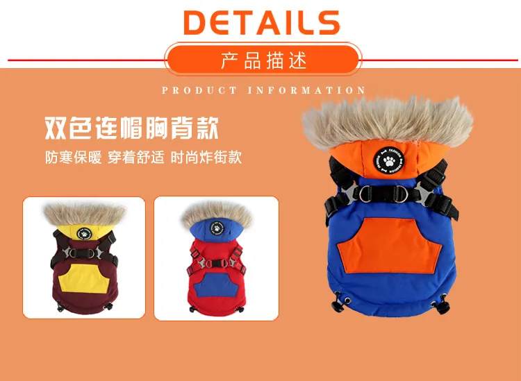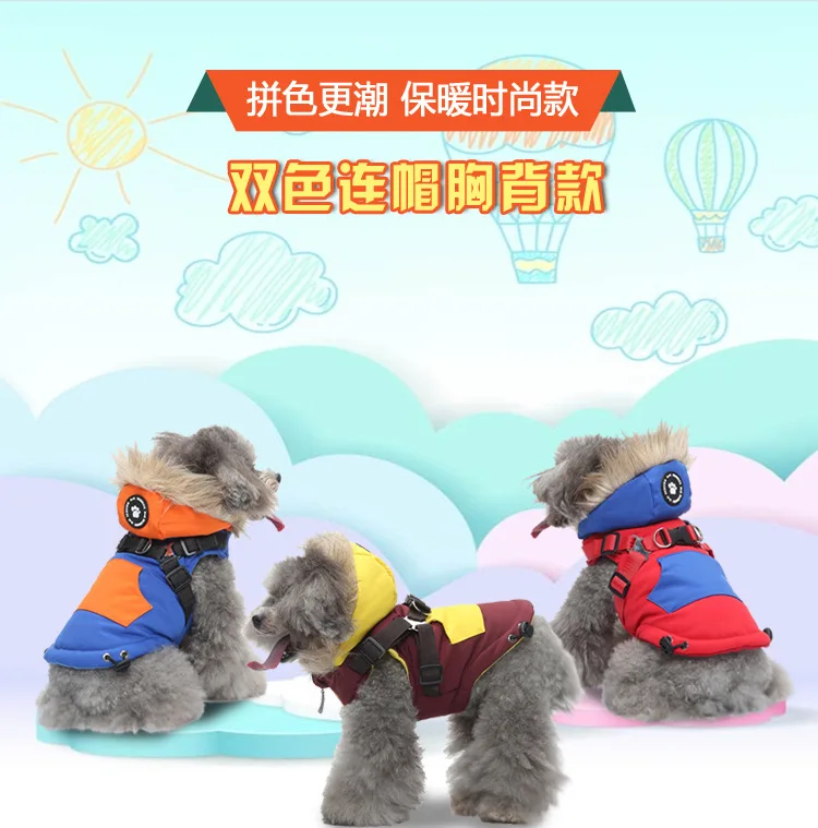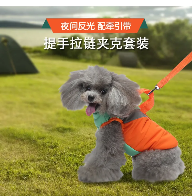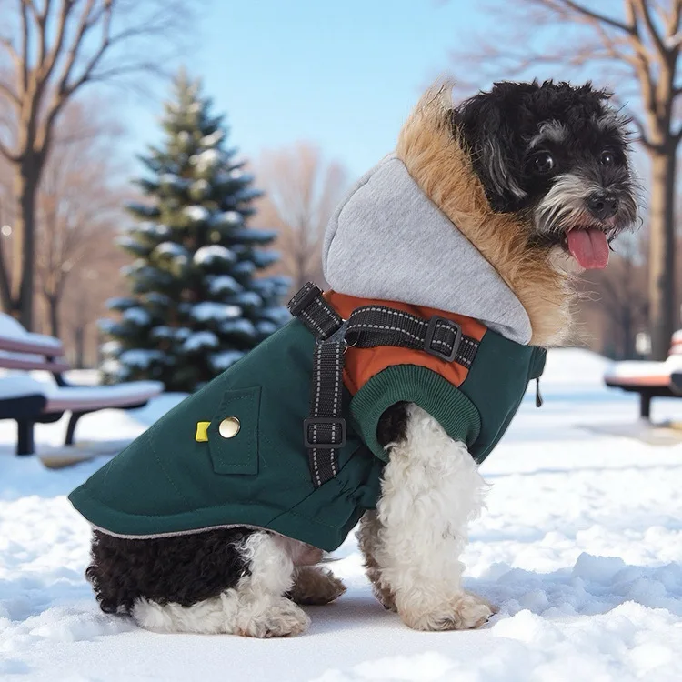 Ropa gruesa para mascotas, cálida en invierno, resistente al frío e impermeable, ropa acolchada de algodón para perros con tracción en el pecho y la espalda de terciopelo para exteriores