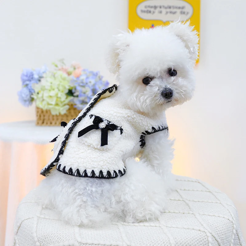 Ropa gruesa de pelusa para perros, chaleco cálido blanco de Año Nuevo para gatos, abrigo de Bulldog Francés a la moda, ropa para cachorros pequeños y medianos
