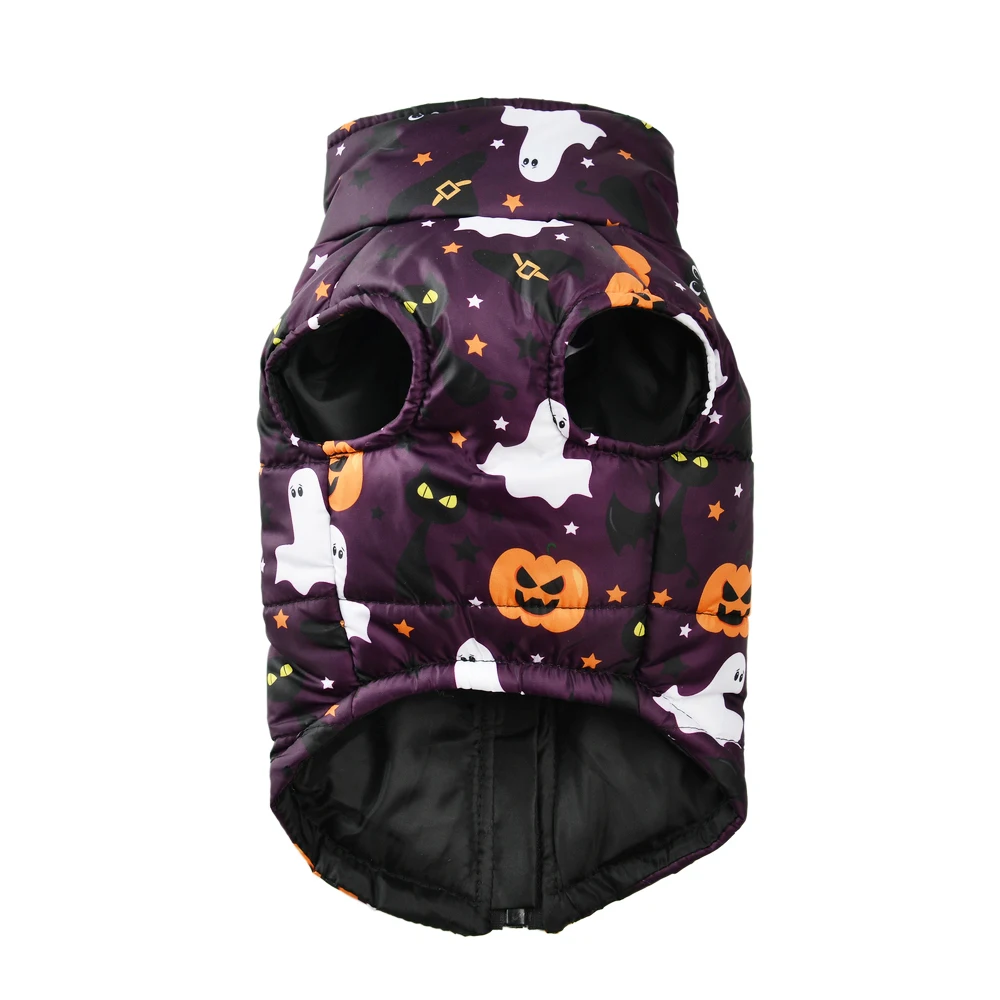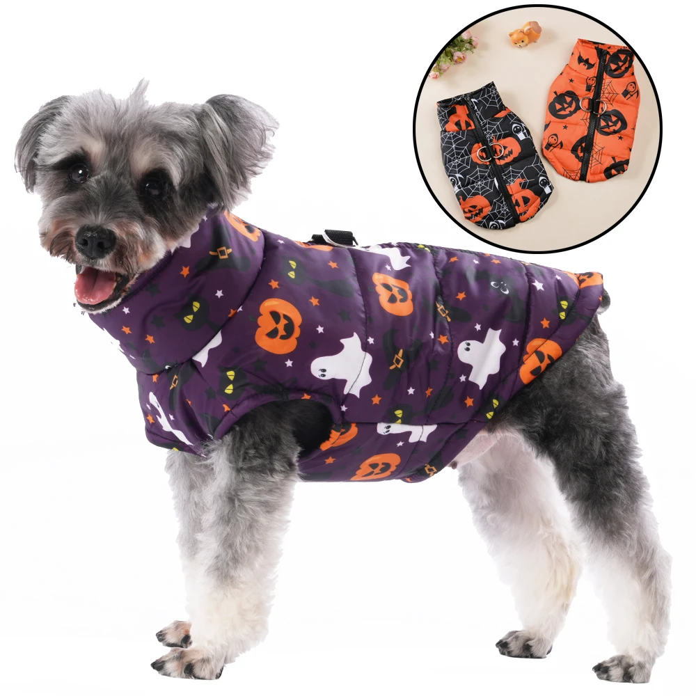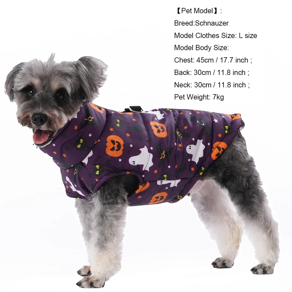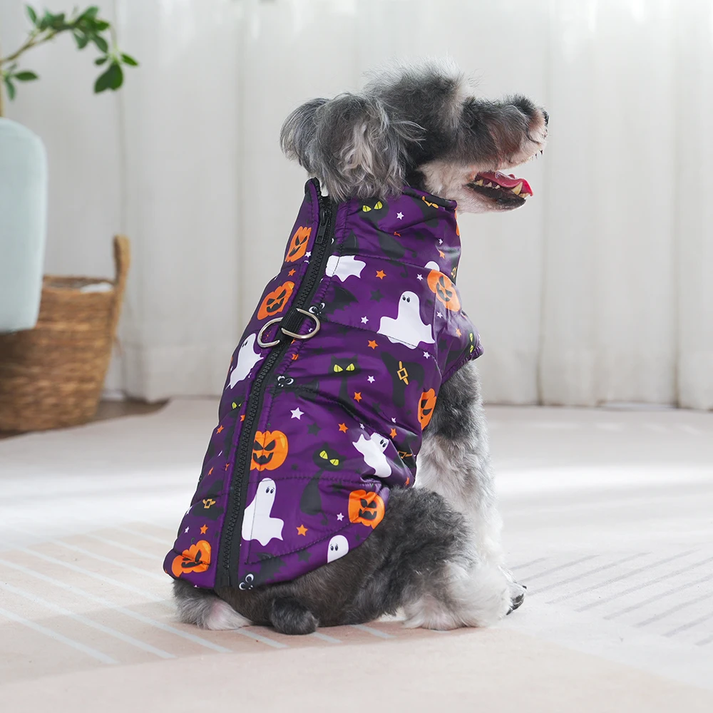 Ropa para perros de Halloween con anillo en D, chaqueta cálida a prueba de viento para exteriores para mascotas, para perros pequeños, medianos, gatos, Chihuahua, Schnauzer, trajes de invierno