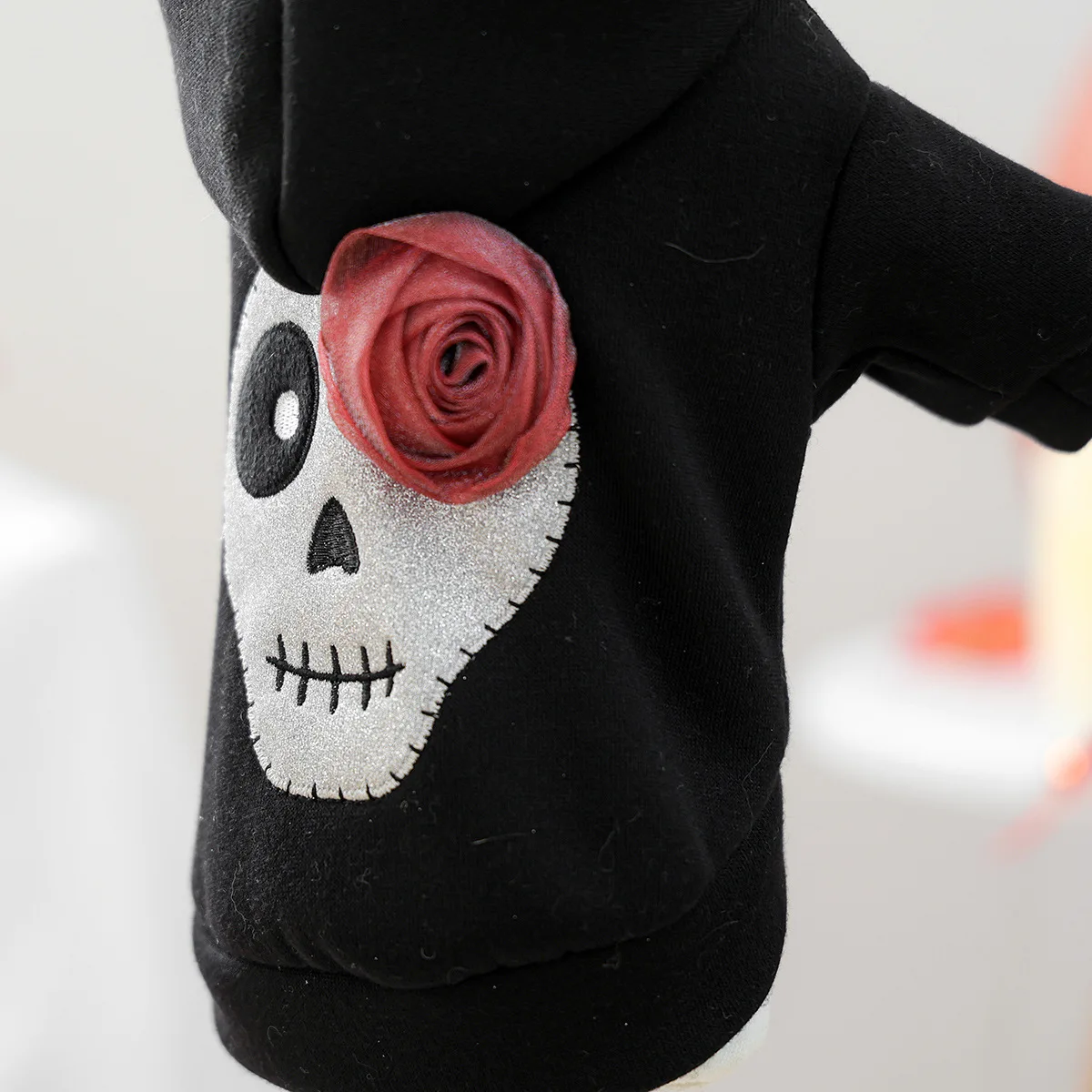 Ropa de Halloween para mascotas, calavera de perro con rosa, Sudadera con capucha para perro con sombrero, ropa elegante para mascotas, ropa de cosplay para mascotas, ropa de fiesta para mascotas