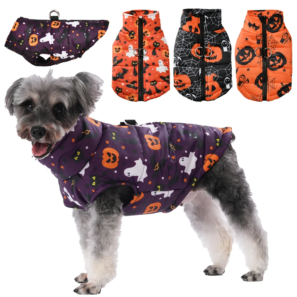 Halloween Dog Clothes With D-ring Outdoor Windproof Warm Pet Jacket For Small Medium Dogs Cats Autumn Winter Chihuahua Costume
