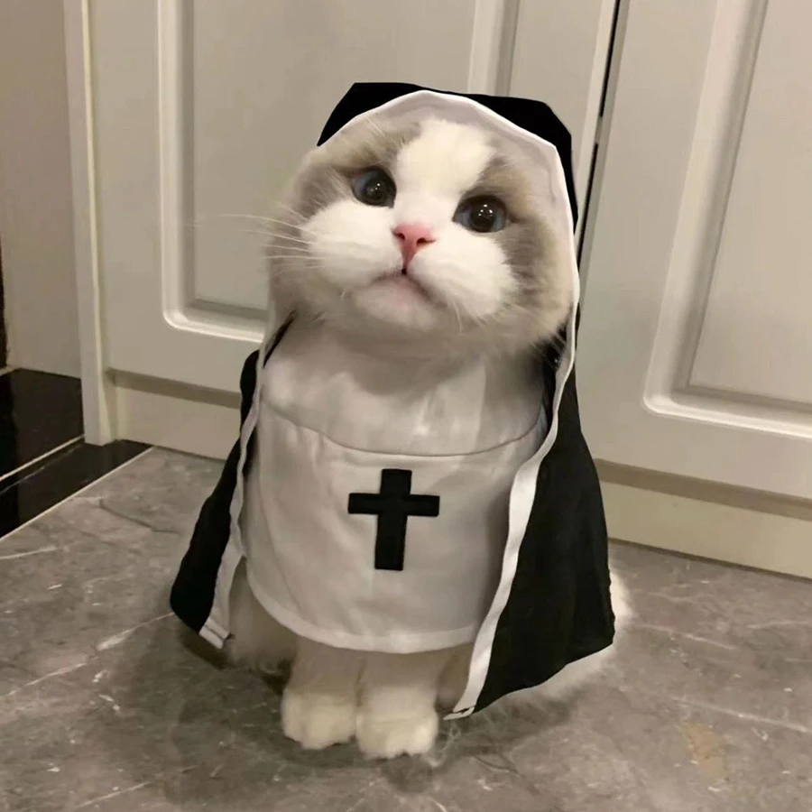 Ropa de Halloween para perros, disfraz bonito de monja de Cristo, disfraz de mascotas para perros pequeños y grandes, maquillaje con estampado de cruces, trajes para Chihuahua, regalo para gatos