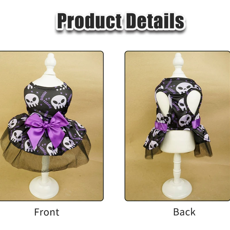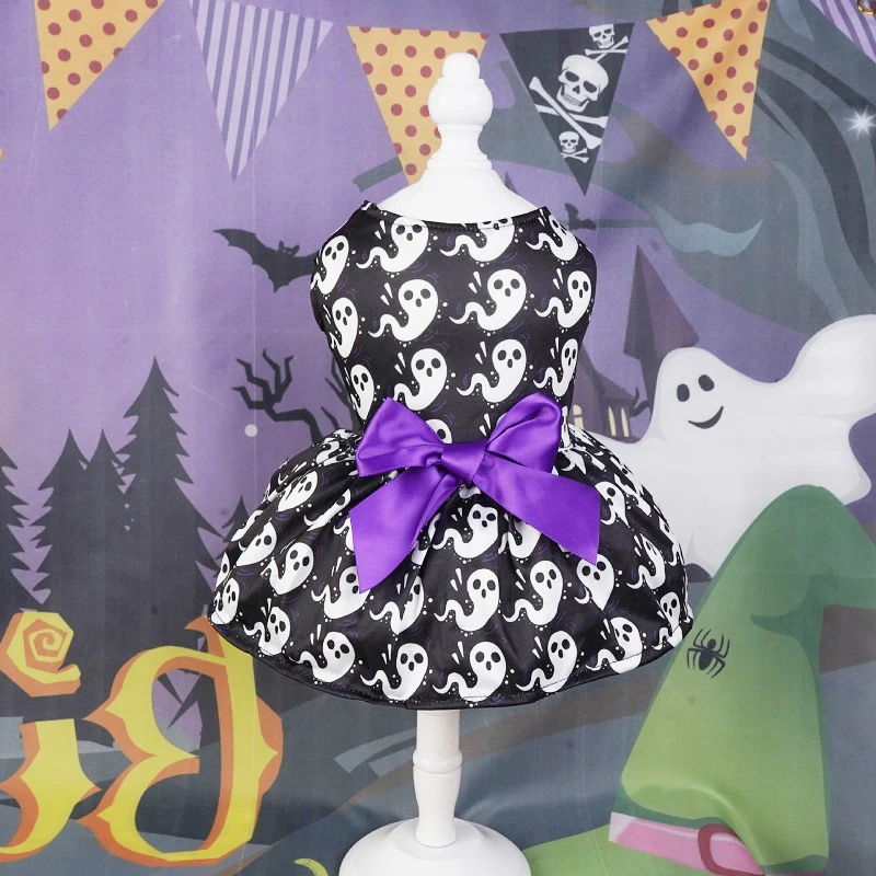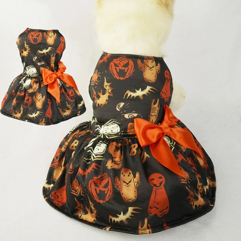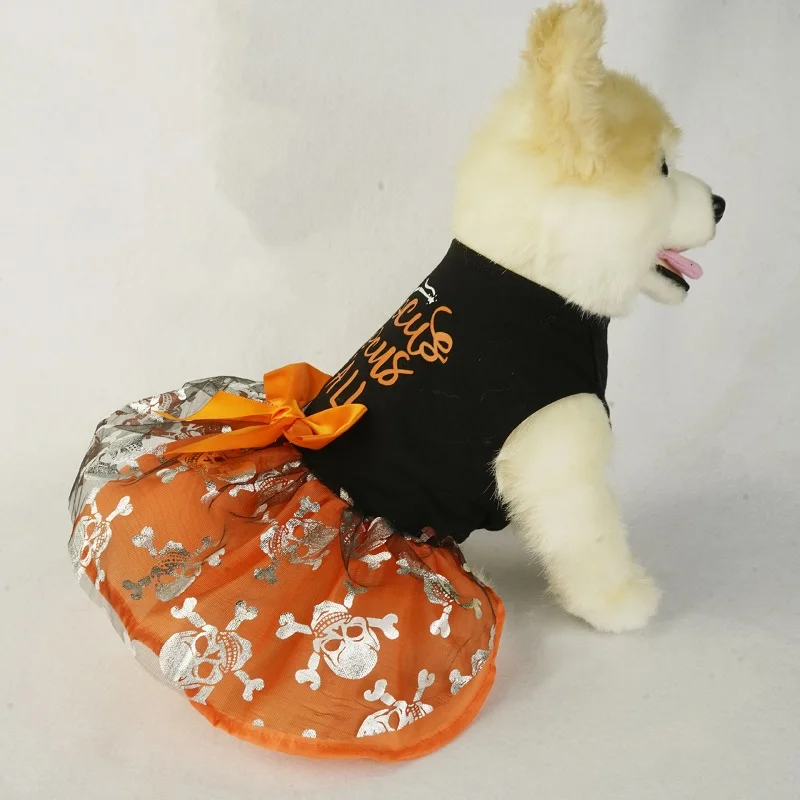 Ropa de Halloween para perros, vestido con estampado de calabaza, vestido divertido para mascotas, vestido de malla con lazo de Chihuahua Yorkie, ropa de fiesta para mascotas, disfraz de perro gato