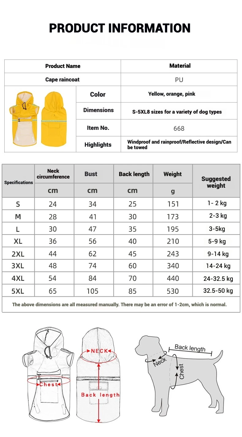 · Nombre: Chubasquero para mascotas con tiras reflectantes estilo capa