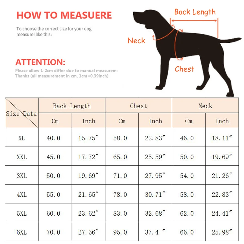 1. Por favor, compruebe las medidas de su mascota para asegurarse de que la ropa se ajuste a las mascotas antes de realizar el pedido (1 pulgada=2,54 cm)