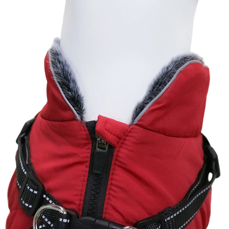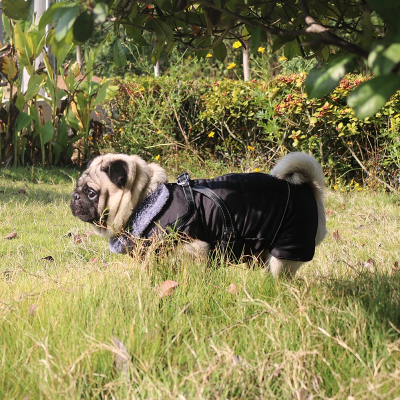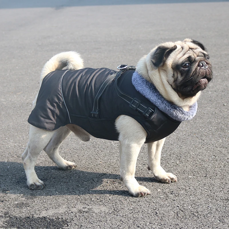 Ropa impermeable para perros con arnés para perros medianos y grandes, cuello de piel cálido para invierno, chaqueta reflectante para perros, disfraz de Bulldog Francés♥Chaqueta deportiva cálida para clima frío con arnés integrado, más fácil de salir a caminar que agregar un arnés, como una colocada en la parte posterior de la chaqueta. También puedes quitar el arnés si no lo necesitas.