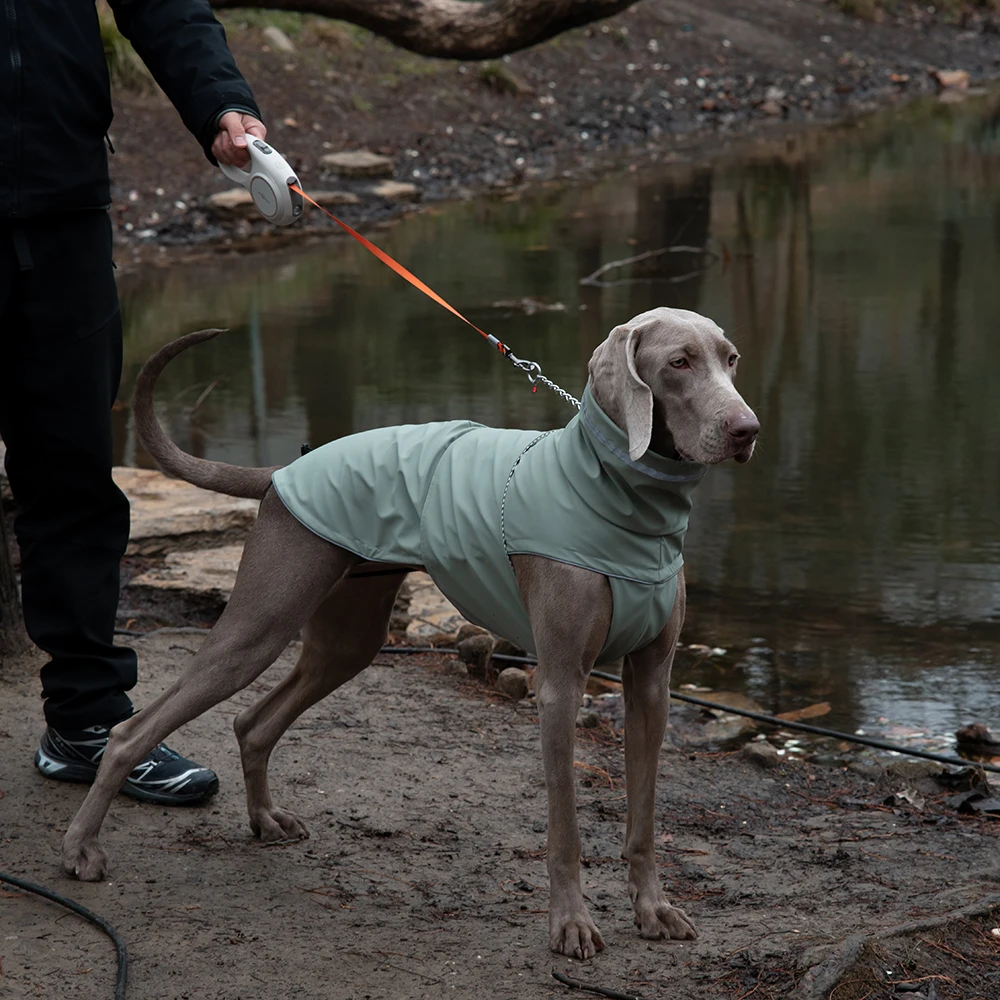 La chaqueta impermeable XL le queda perfecta a mi American Foxhound. Entrega rápida a los Países Bajos (5 días hábiles) - diseño atractivo y ajuste perfecto. Estaba un poco preocupado porque el artículo no tiene muchas reseñas y era un poco caro, pero la calidad es muy alta y espero que dure mucho tiempo. La única crítica que tengo es que me gustaría que hubiera más elementos reflectantes, ya que los que hay son mínimos. No es ideal para caminar en la oscuridad; necesito usar elementos reflectantes adicionales.