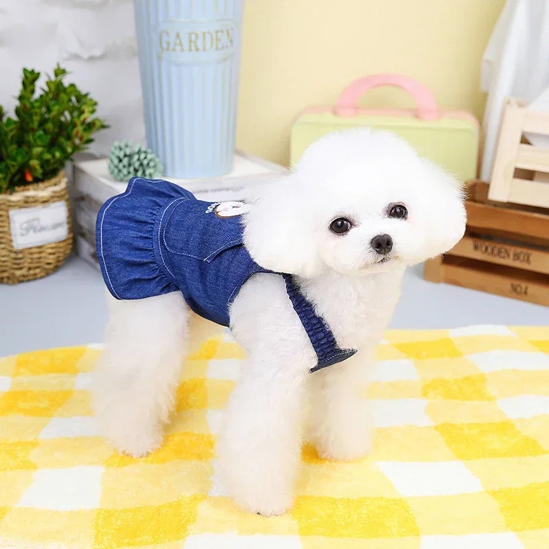 Ropa informal de moda para mascotas, vestido vaquero para mascotas pequeñas, Yorkie, ropa fina para gatos, primavera y verano, trajes elegantes para mascotas
