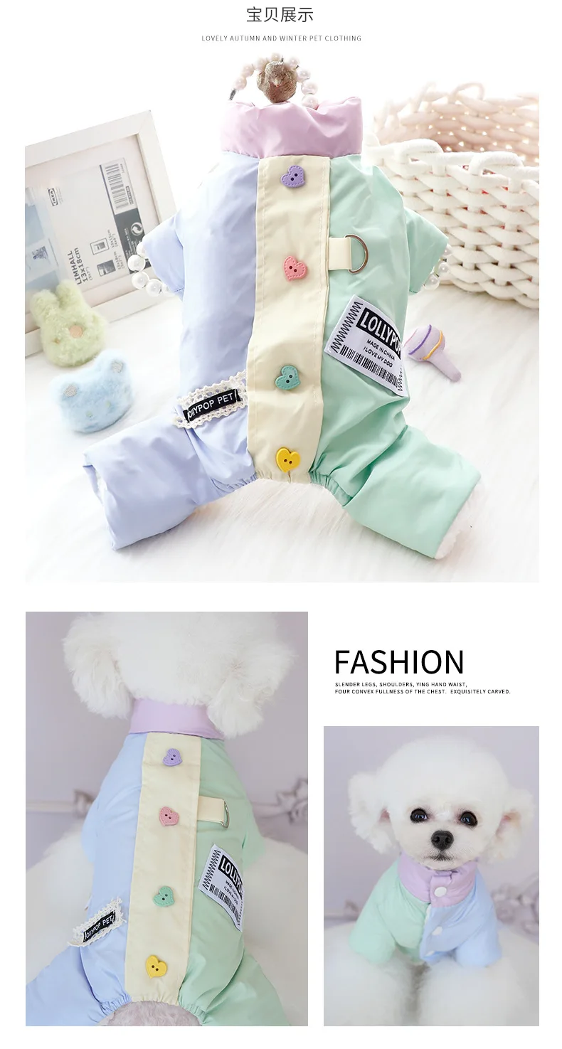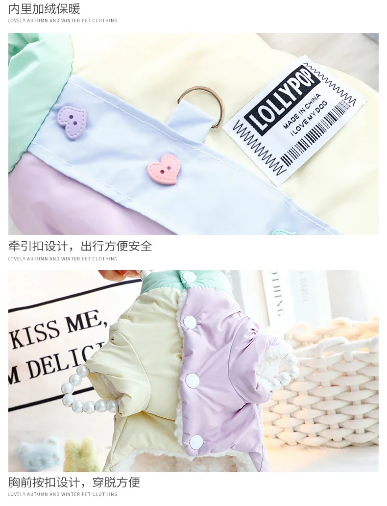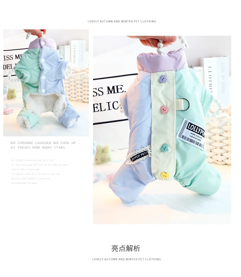 Ropa Inter para perros, abrigo grueso y cálido de algodón de cuatro patas, ropa colorida y bonita para cachorros, traje resistente al viento para perros pequeños/medianos