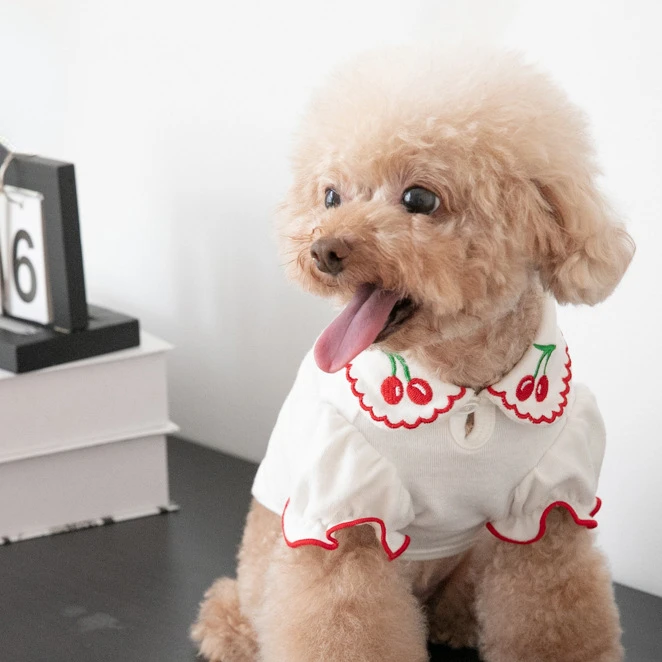 Ropa interior para mascotas con borde ondulado de cereza, Top con manga de burbuja, ropa para mascotas, ropa para gatos y perros, abrigo de osos de peluche, ropa para mascotas, camiseta para perros