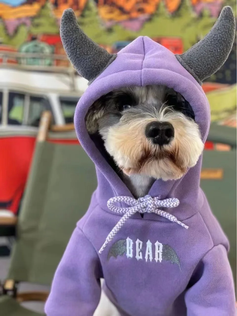 Ropa de invierno con capucha para perros y gatos, Sudadera con capucha de lana para mascotas, cuerno con capucha, engrosado, en comparación con el oso Schnauzer, ropa para cachorros