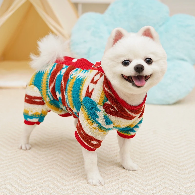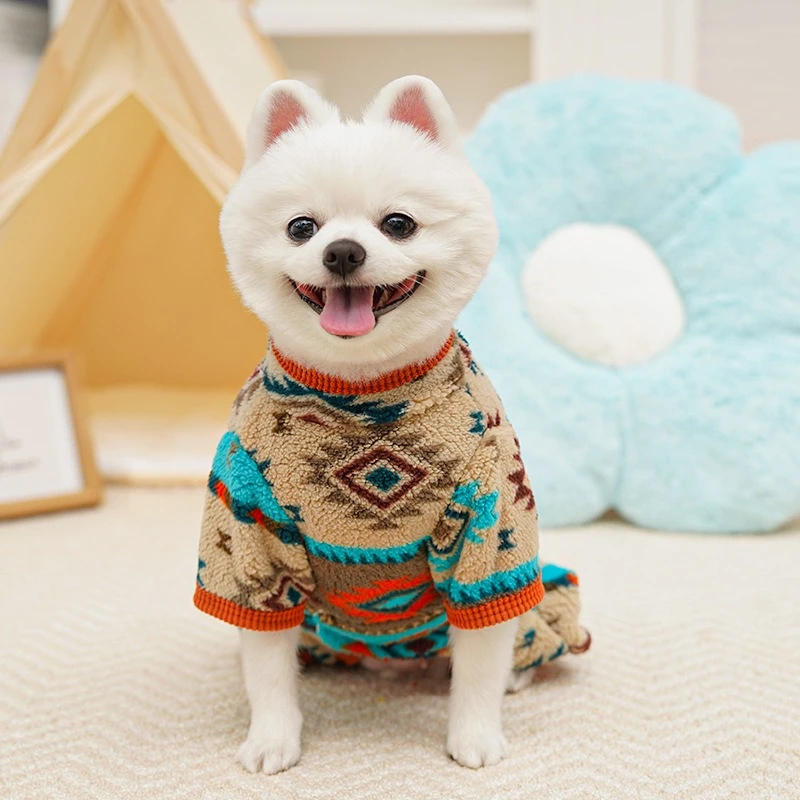 Ropa de invierno con estampado étnico para perros pequeños y medianos, cuatro mallas protectoras para gatos de Año Nuevo, conjunto de terciopelo para Bulldog Francés