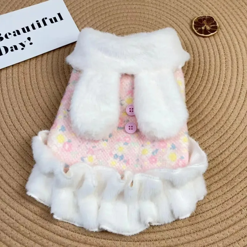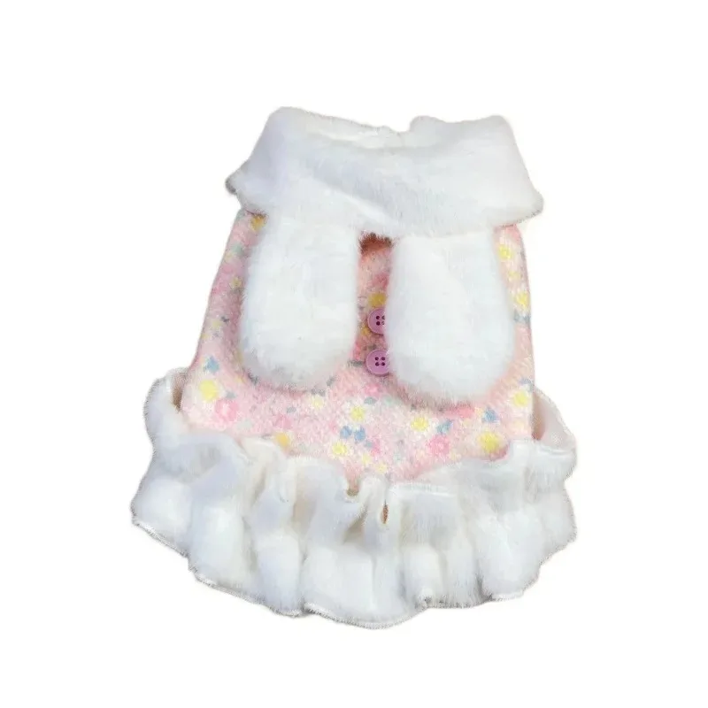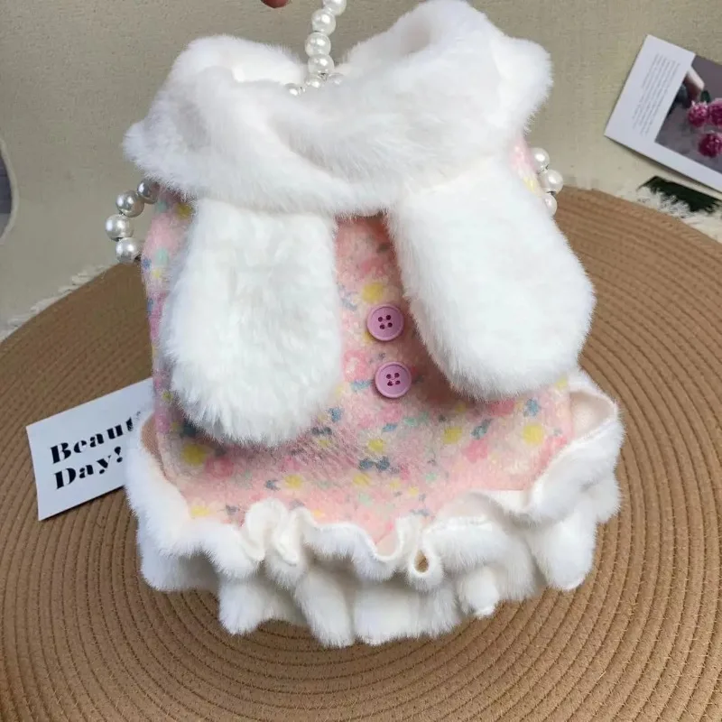 Ropa de invierno de felpa para mascotas, vestido con orejas de conejo para cachorros, ropa de dos piernas, ropa cálida bonita que el oso, abrigo para cachorros, ropa para mascotas