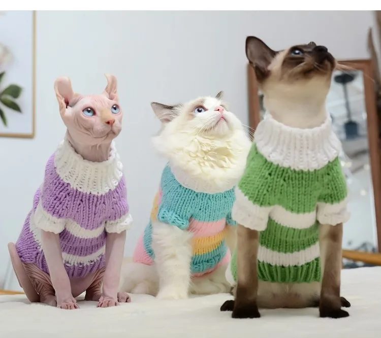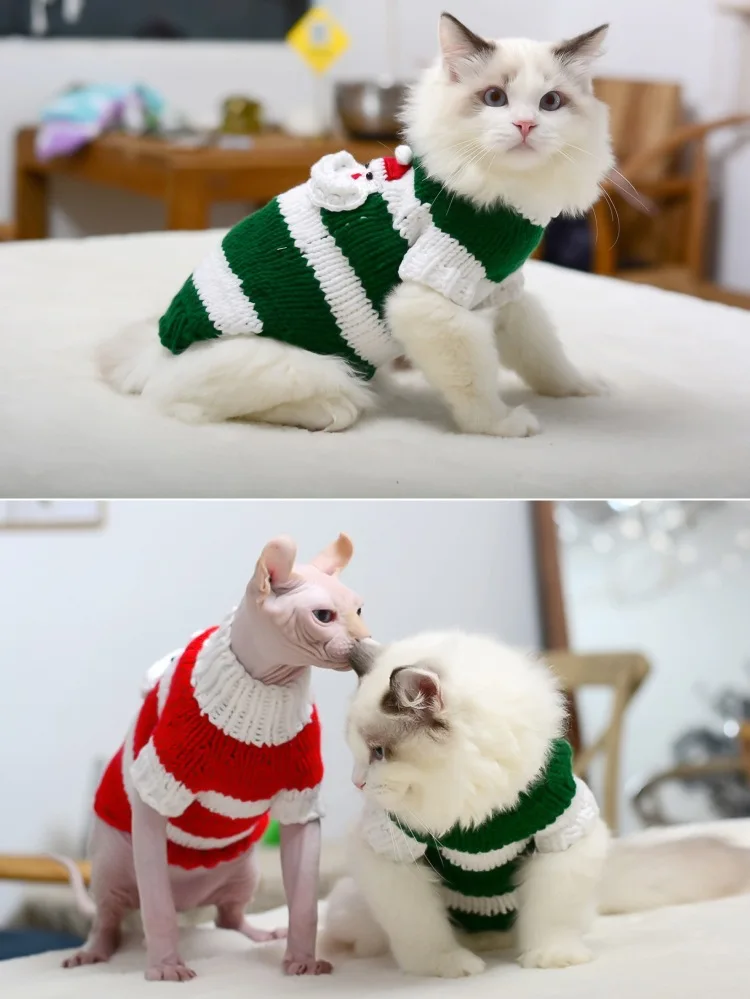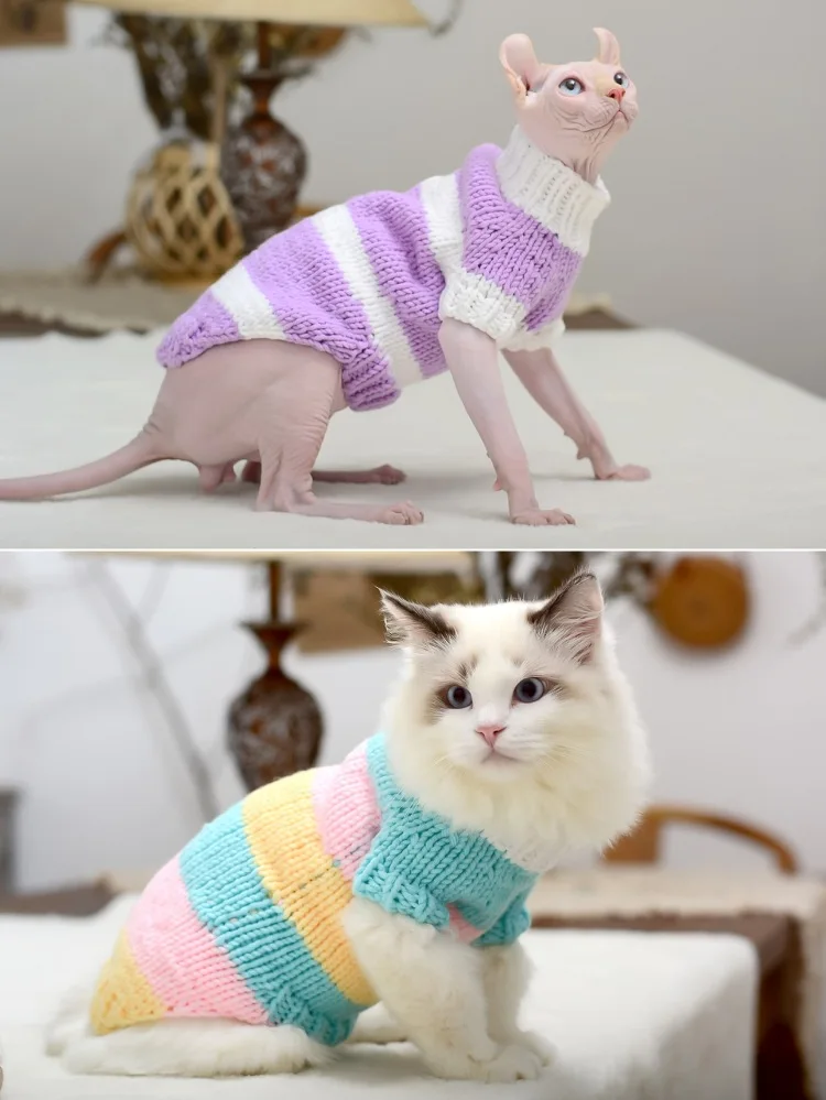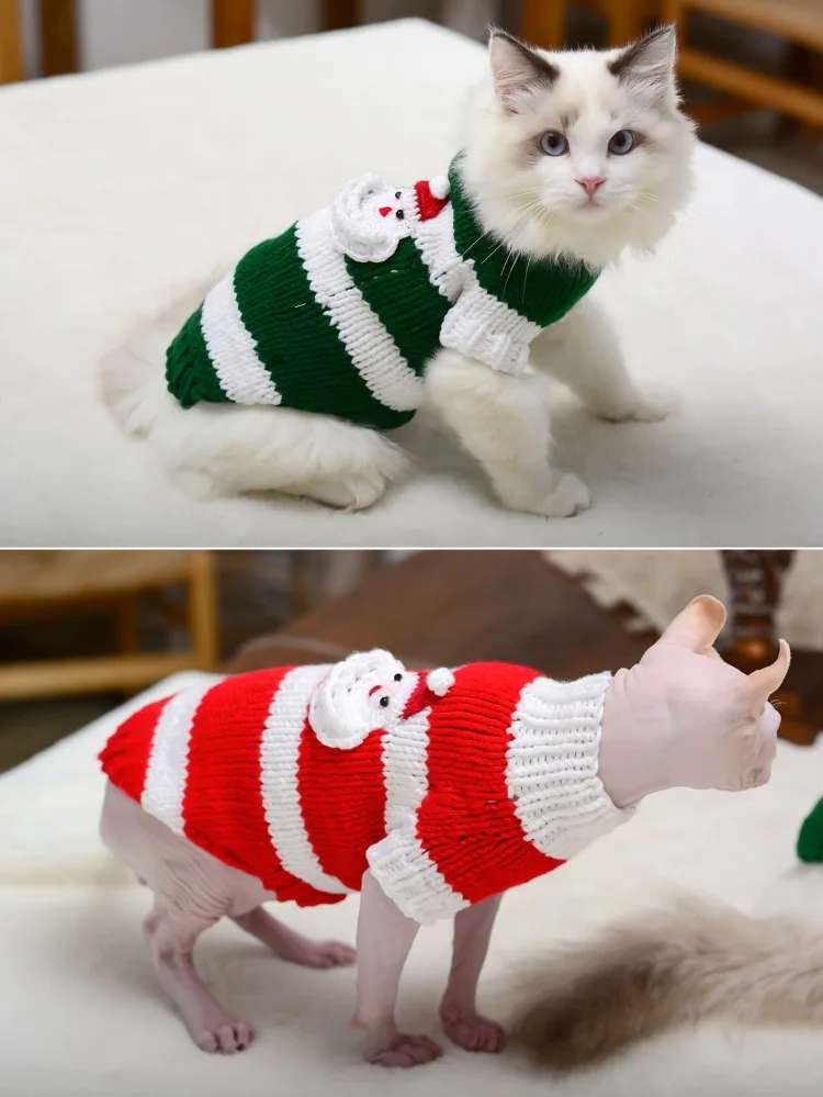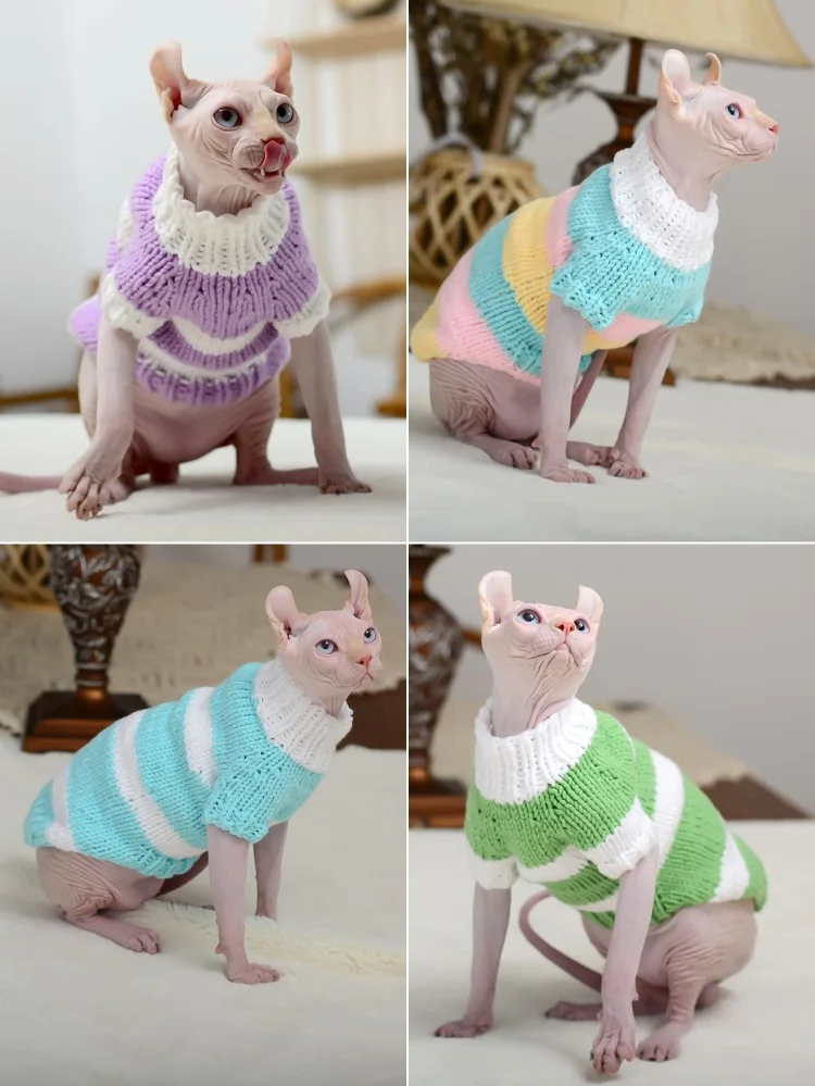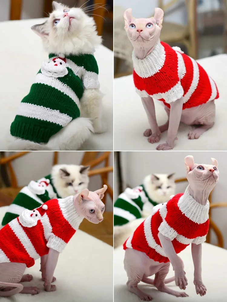 Ropa para gatos invierno cálido suave perro gato hecho a mano suéter Sphynx gato lindo Sudadera con capucha ropa Sphinx gatito ropa de Navidad para gato