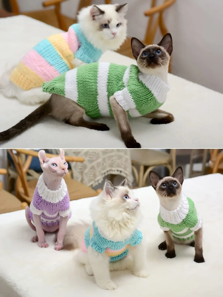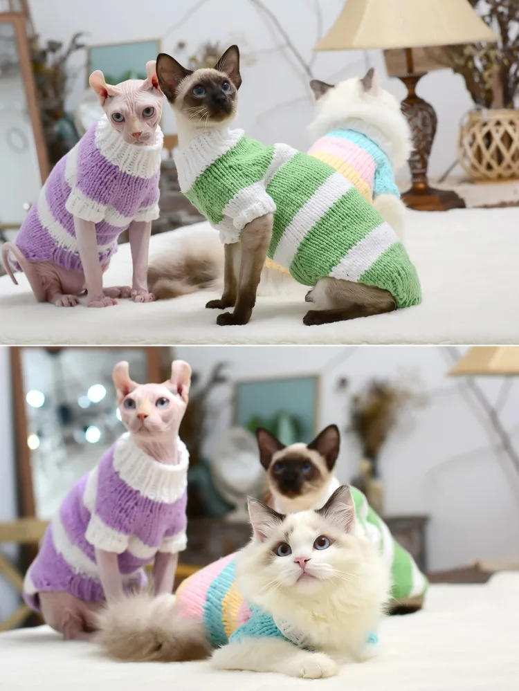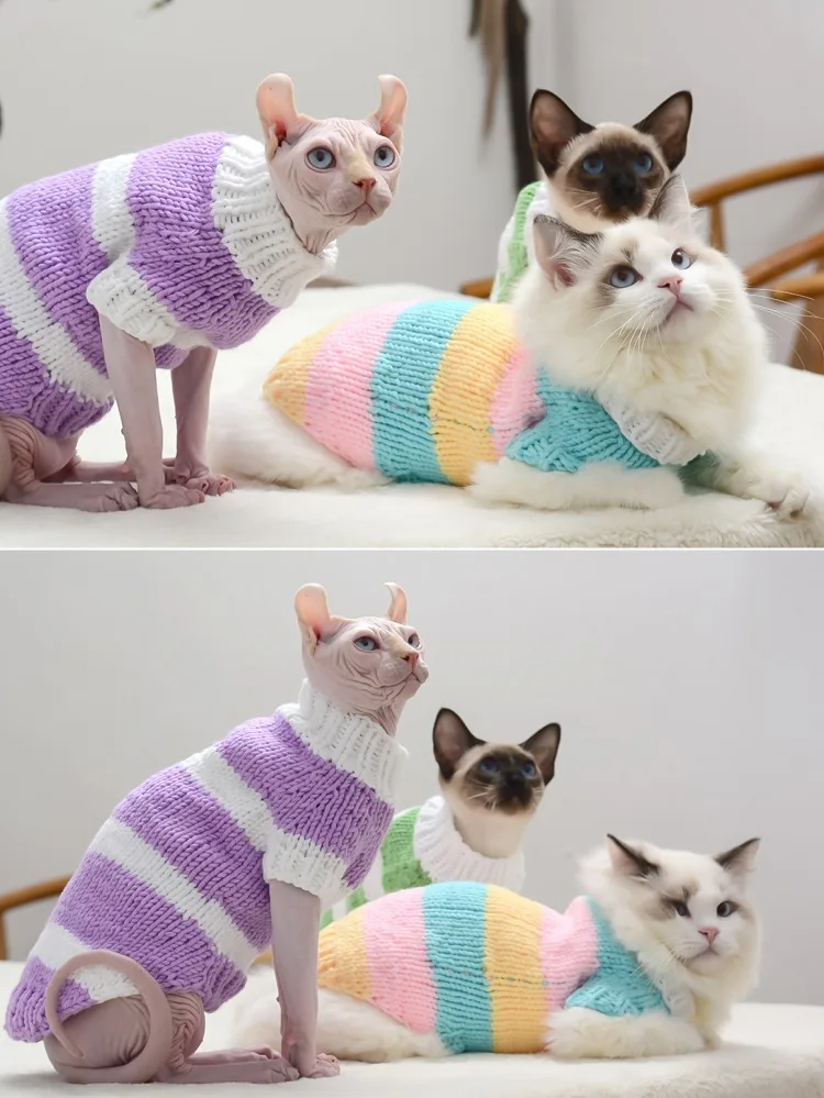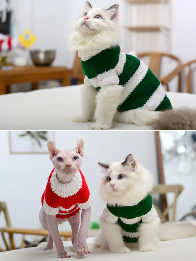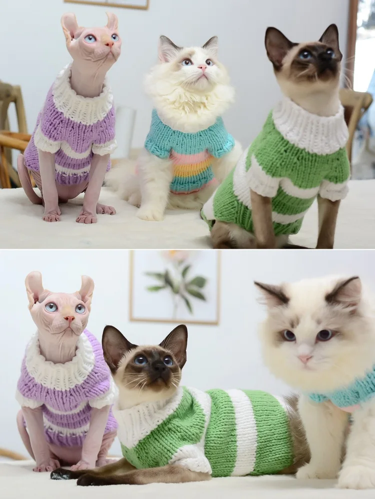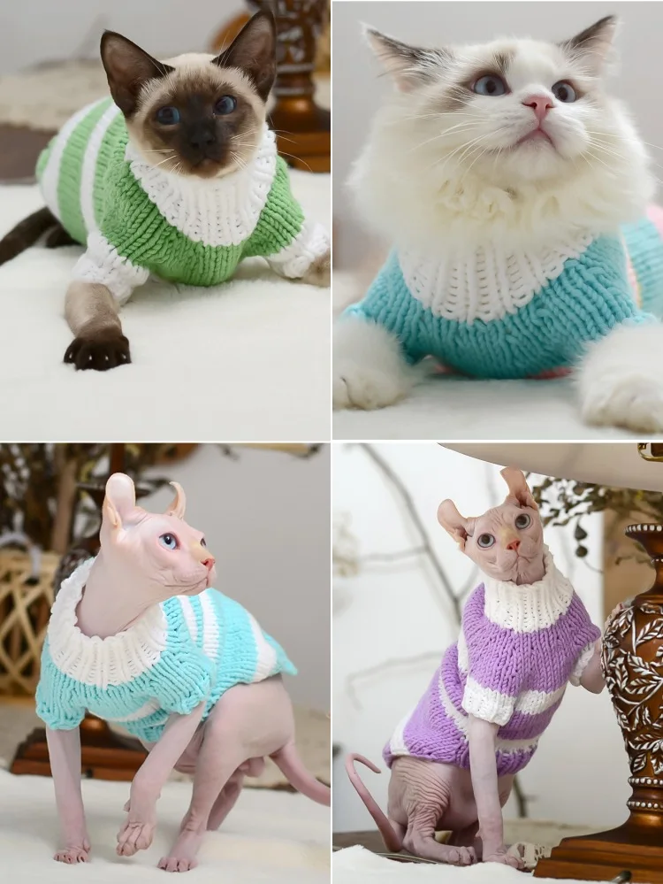 Ropa para gatos invierno cálido suave perro gato hecho a mano suéter Sphynx gato lindo Sudadera con capucha ropa Sphinx gatito ropa de Navidad para gato
