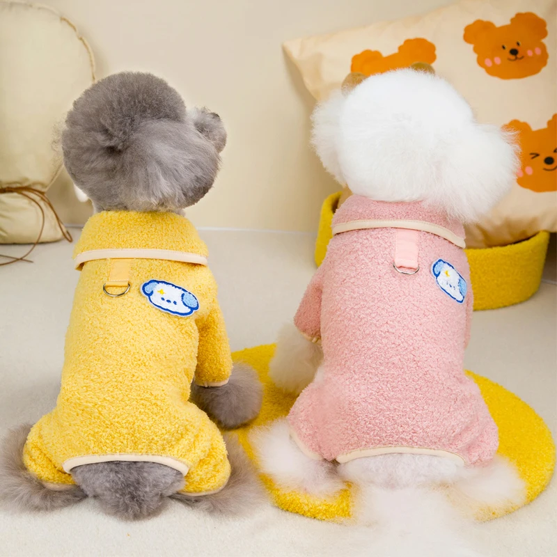 Ropa de invierno para perro de lana gruesa, mono, pijamas para perro amarillo rosa, azul y amarillo, disfraz, mono para cachorros, mono Pomeranian Bichon