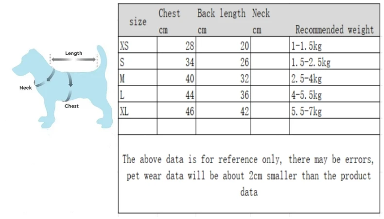 Note: Please choose the pet clothing according to the size we show, please make sure that the size is suitable for your pet.