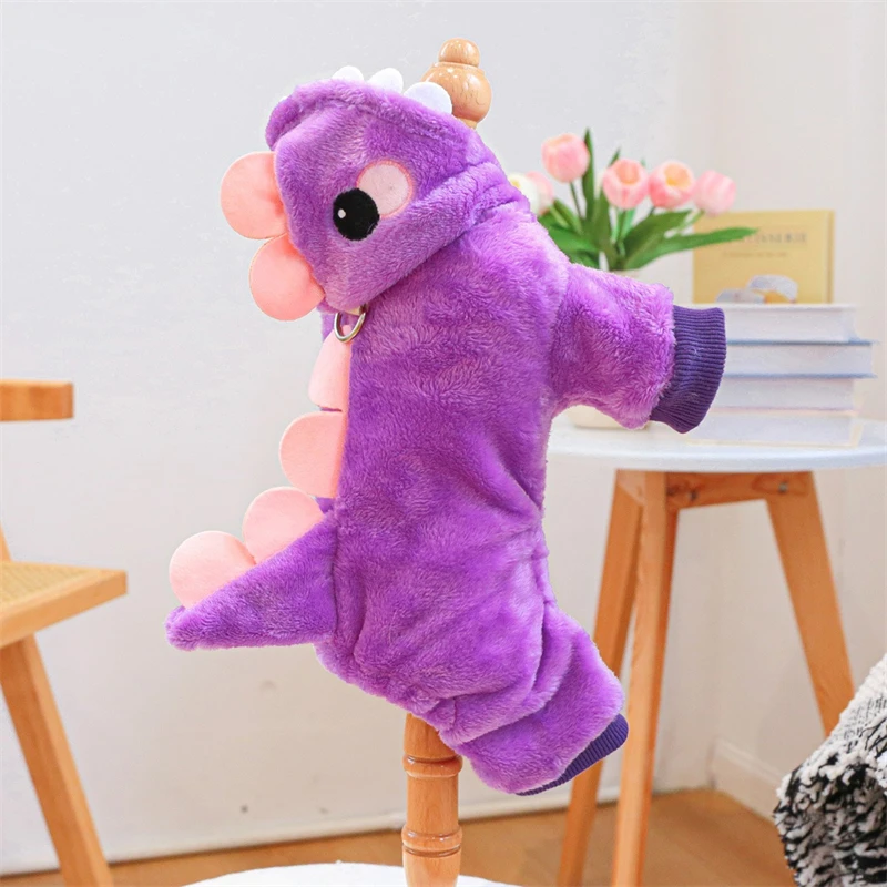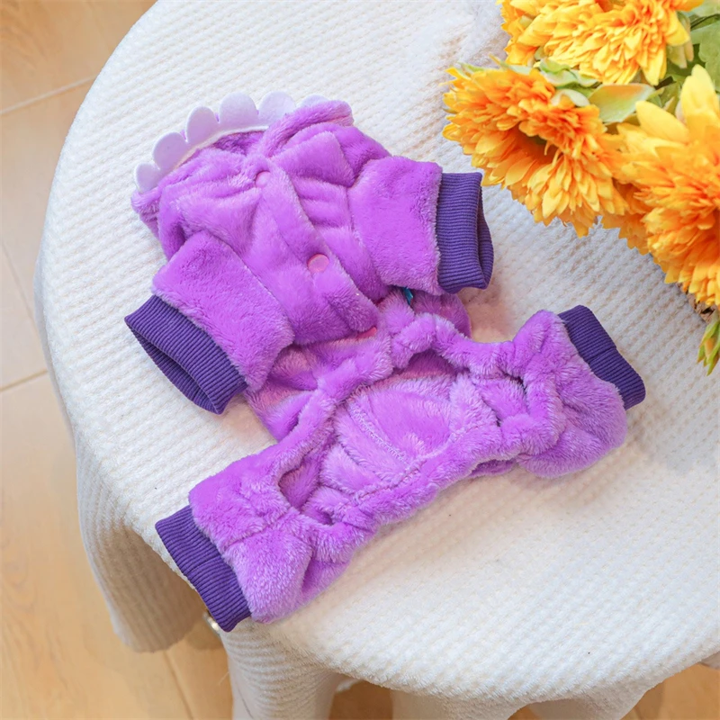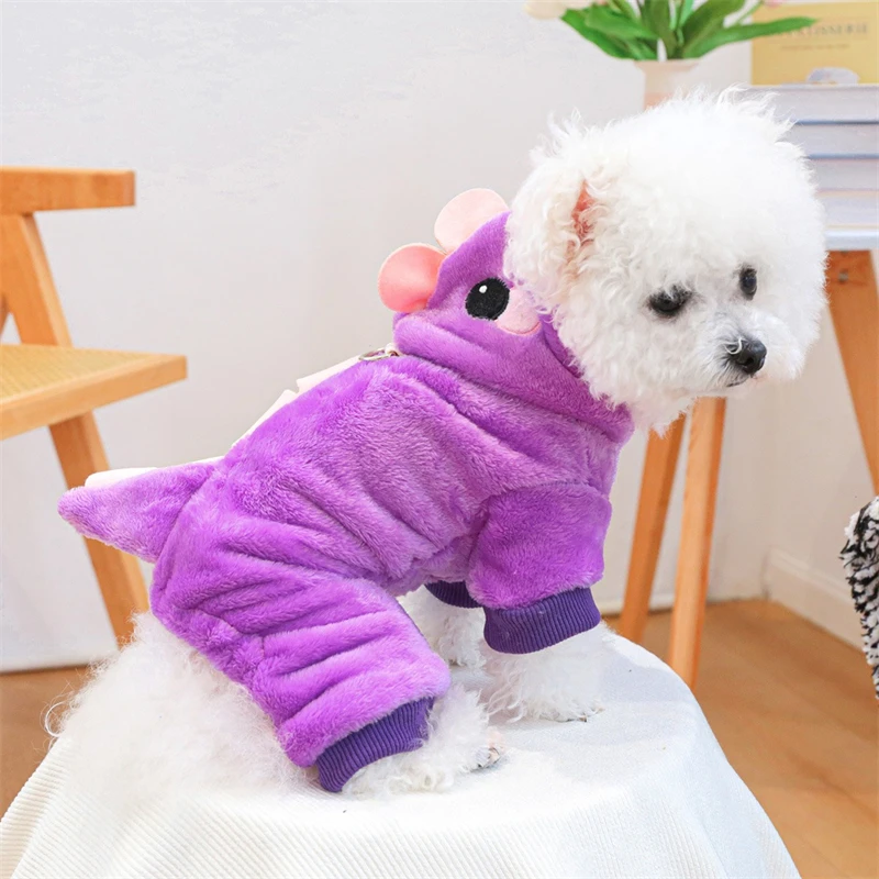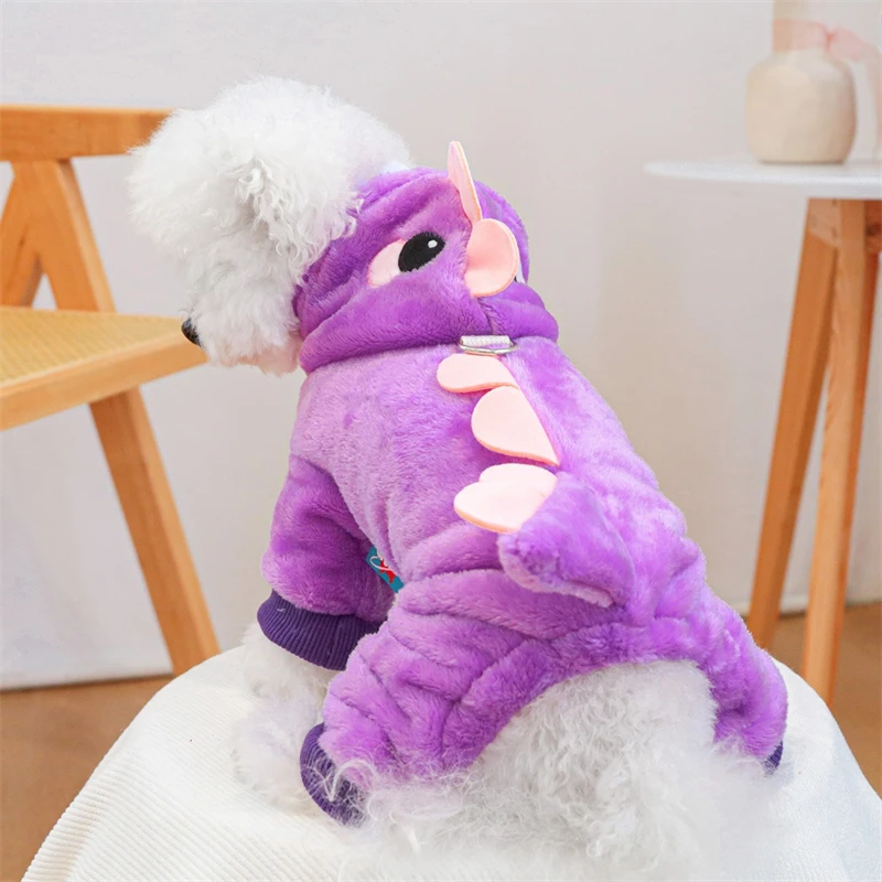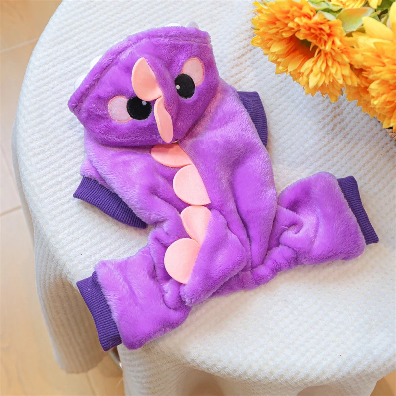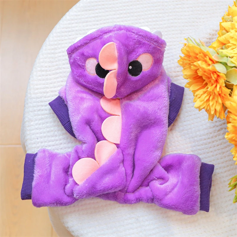 Ropa de invierno para mascotas monstruo púrpura para perros pequeños y medianos, monos de franela suave para Cosplay y gatos, ropa gruesa de diseñador para Chihuahua