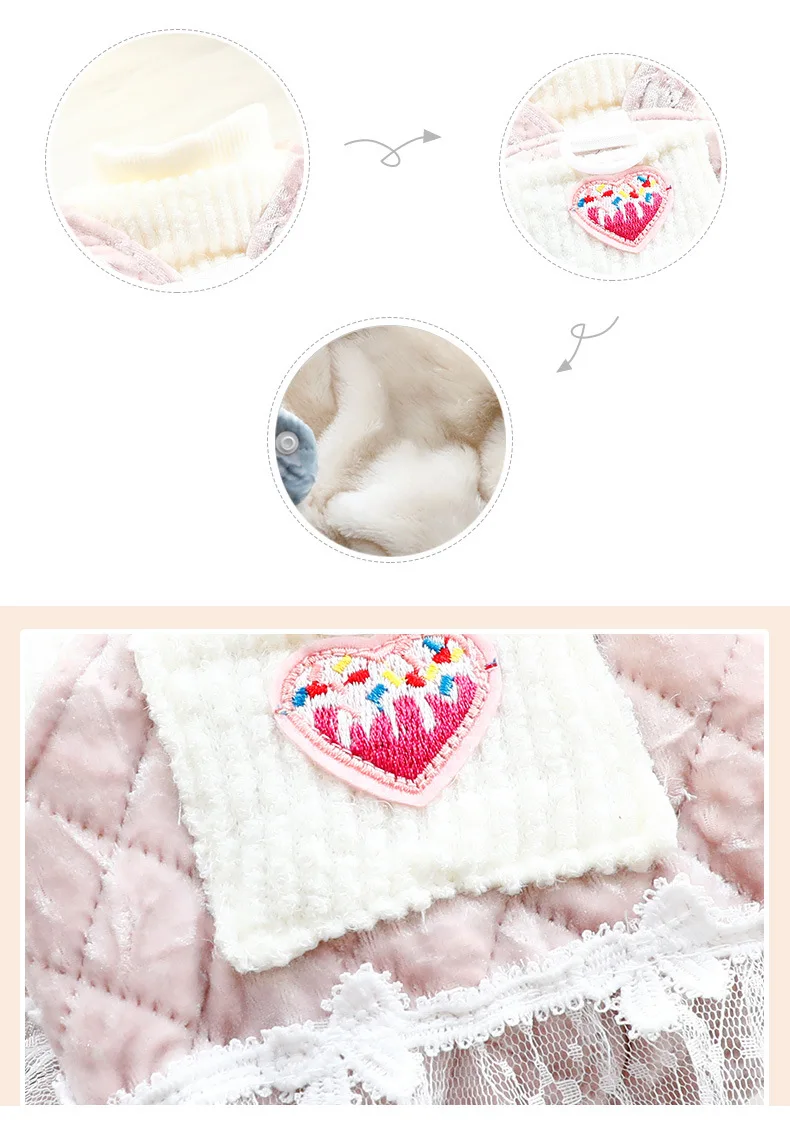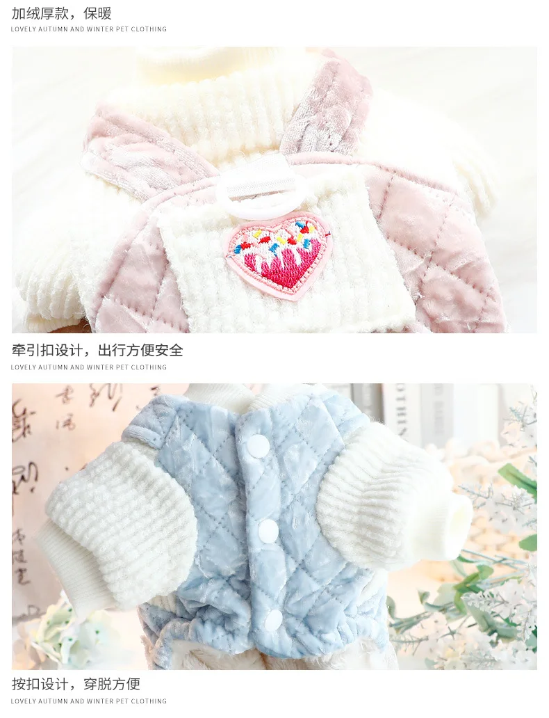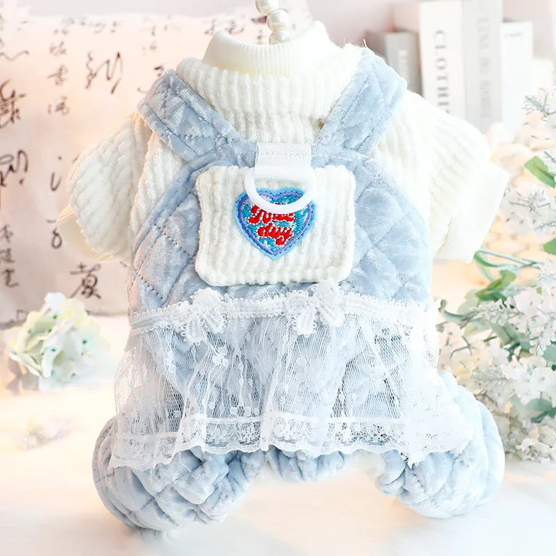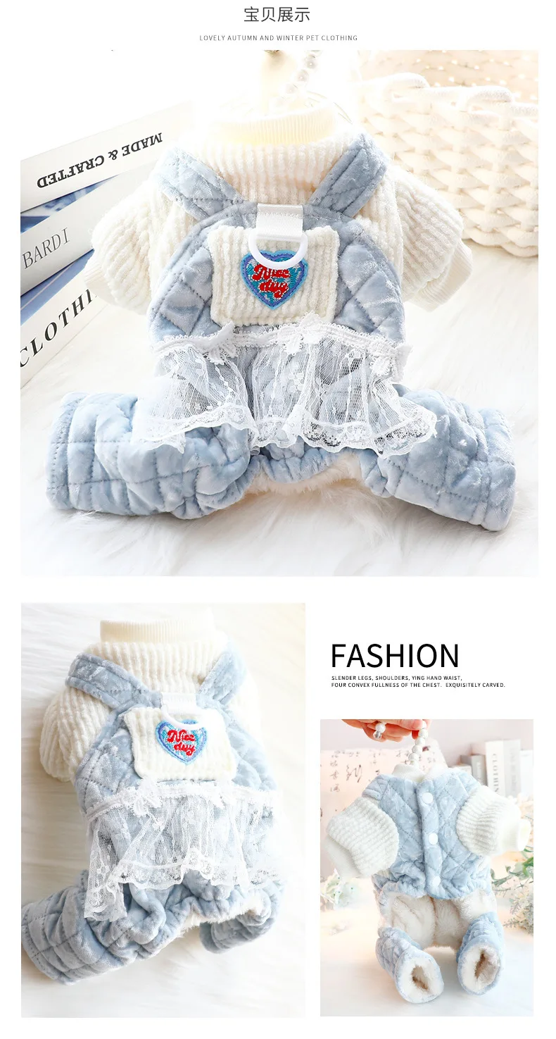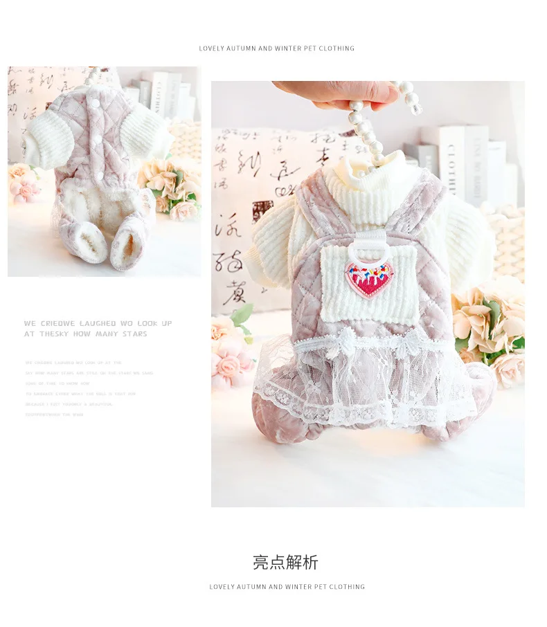 Ropa de invierno y otoño para perros, abrigo de algodón de cuatro patas a cuadros de lana gruesa, traje cálido de Estilo Princesa de encaje para perros pequeños