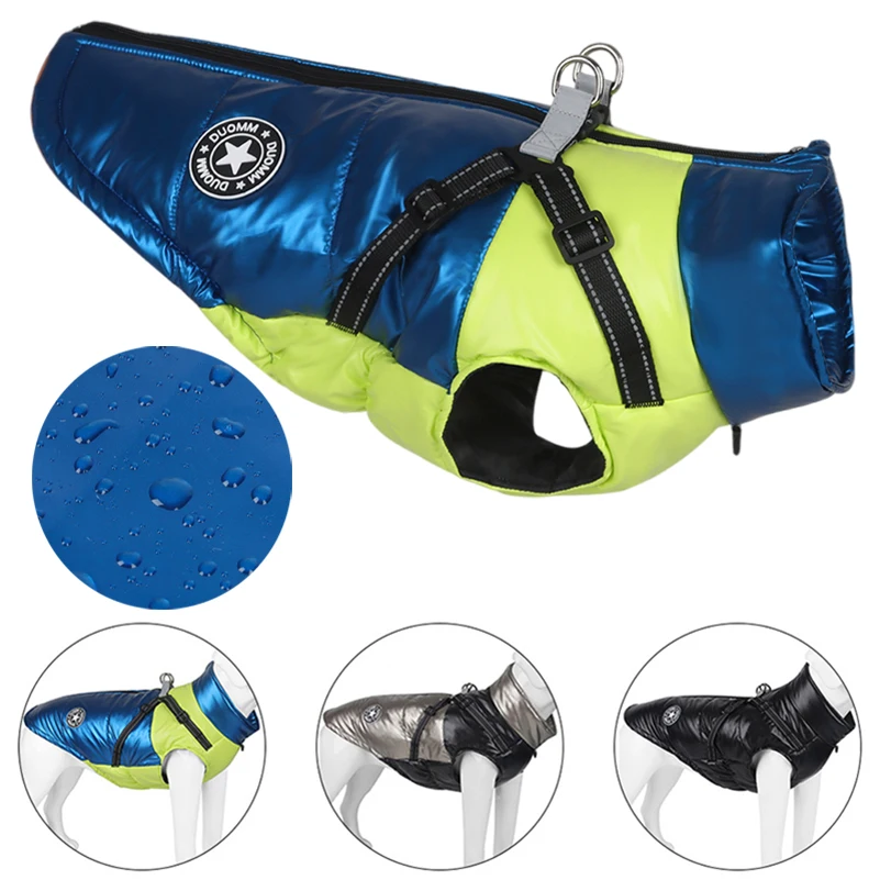 Ropa para perros grandes, chaqueta cálida de invierno para perros con arnés, traje reflectante para cachorros, impermeable, Pug, Bulldog francés, disfraces de Labrador