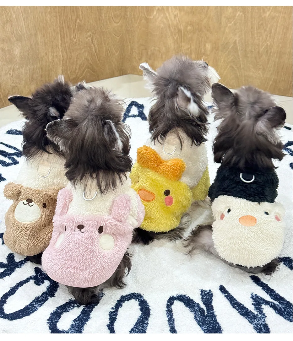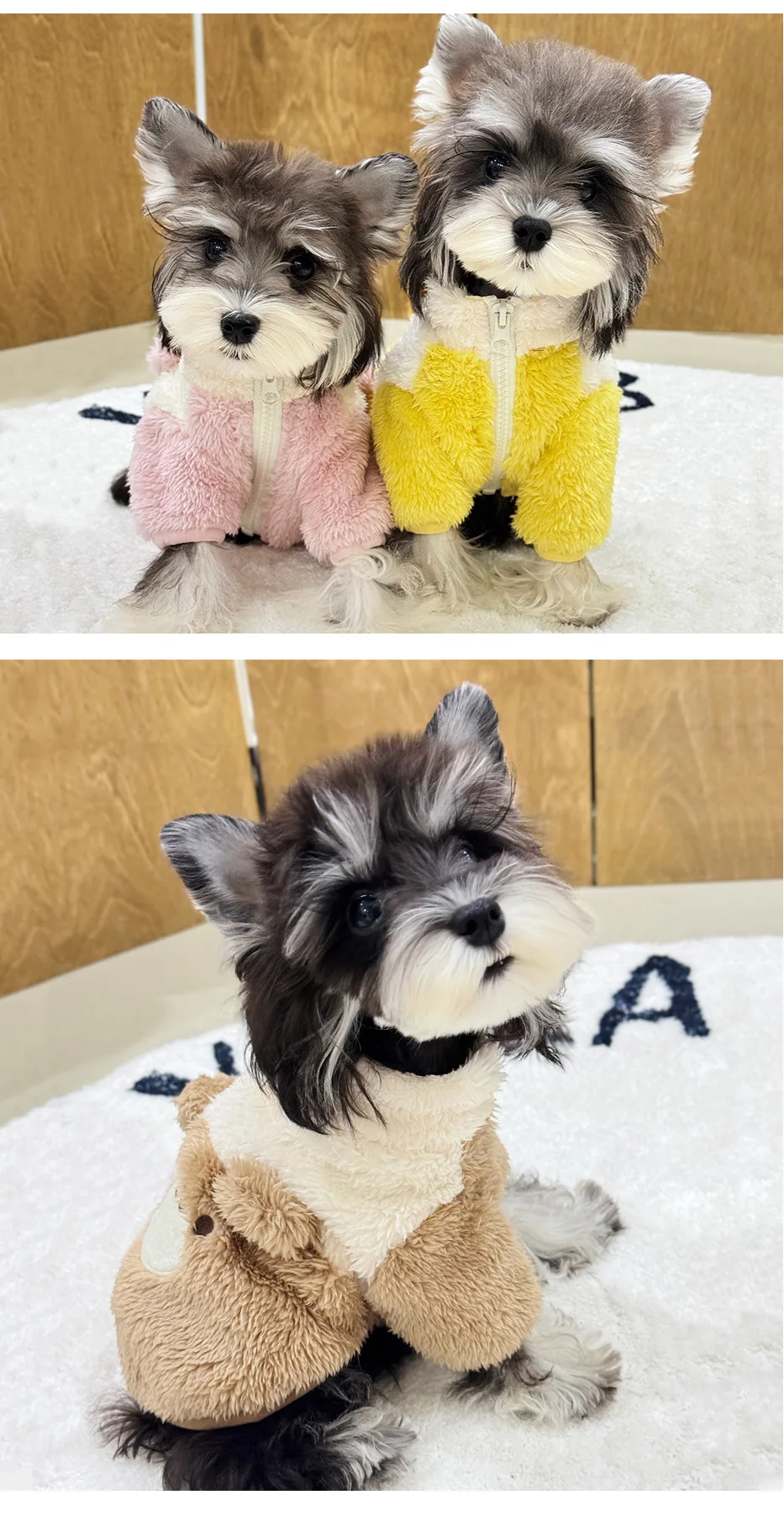 Ropa de invierno para perros, abrigo de algodón polar 3d con orificio para correa, ropa cálida para perros de dos patas para perros pequeños
