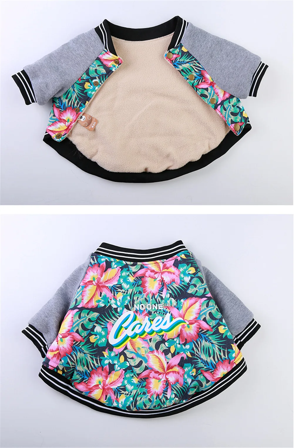 Ropa de invierno para perros, abrigo Hawaiano Aloha para mascotas, chaqueta cálida acolchada de algodón para mascotas, ropa para perros con estampado de flores