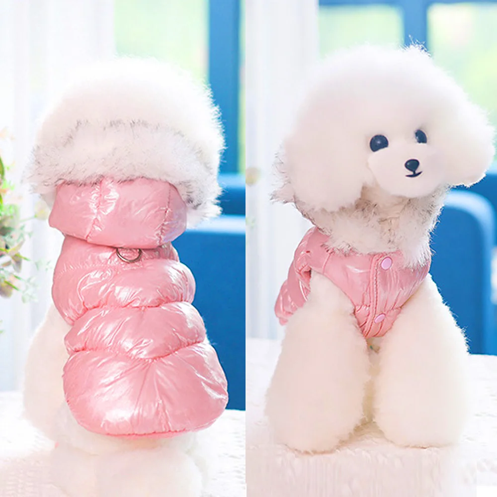 Ropa de invierno para perros, chaqueta cálida de algodón para perros, abrigo con sombrero de piel, ropa gruesa a prueba de viento para mascotas, ropa para perros Chihuahua Yorkshire Pug
