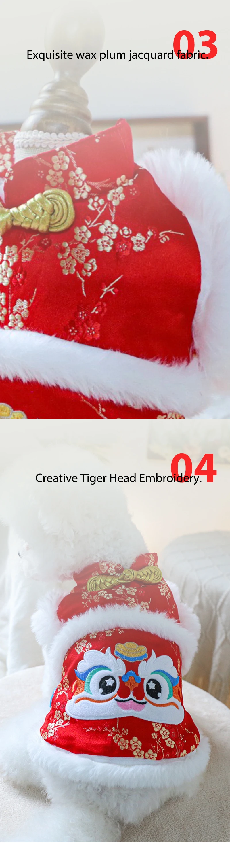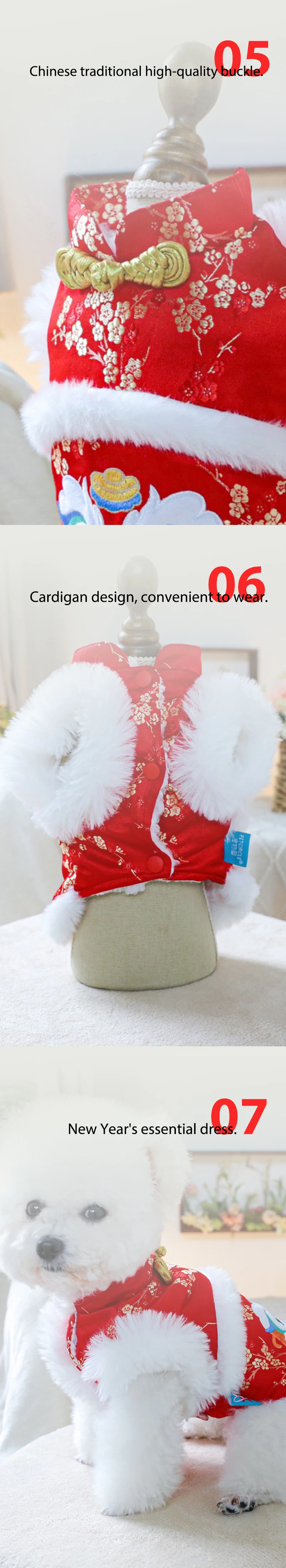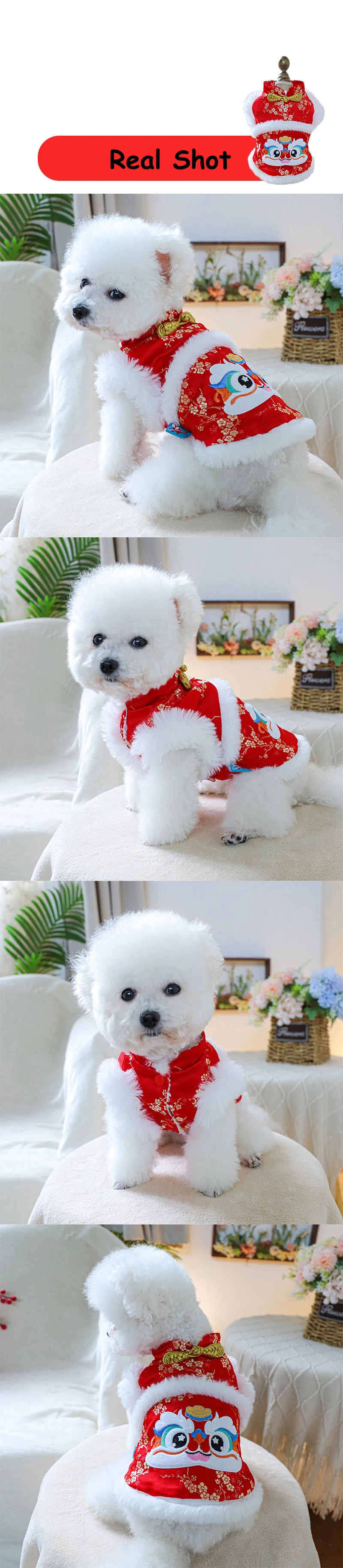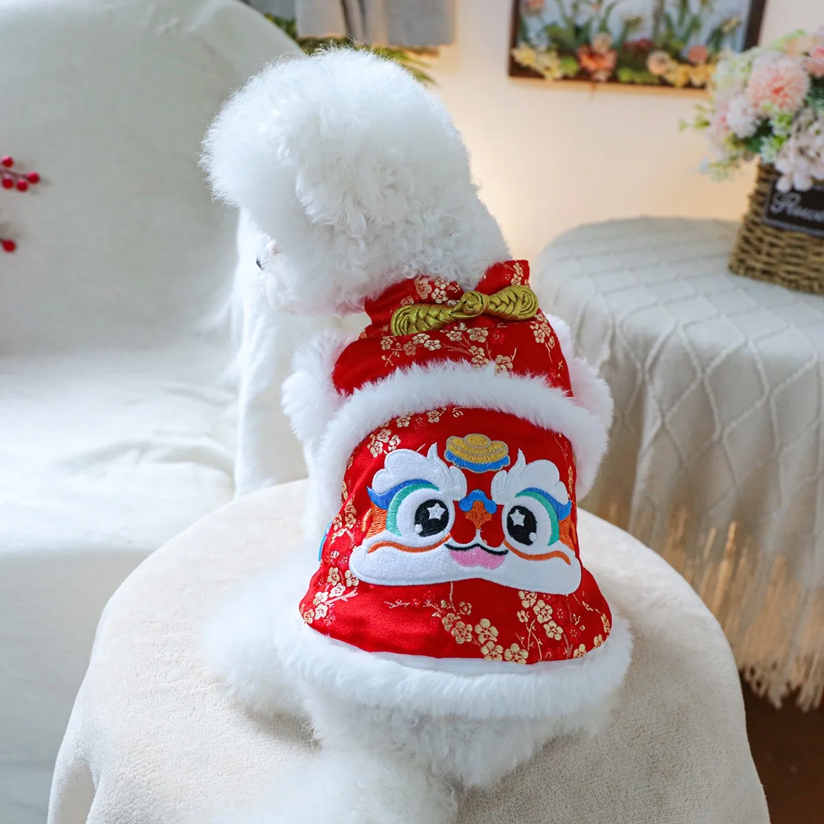 Ropa de invierno para perros chinos, danza del león Vintage, abrigos personalizados para gatos esfinge, sin mangas, Cheongsam cálido para cachorros y niñas