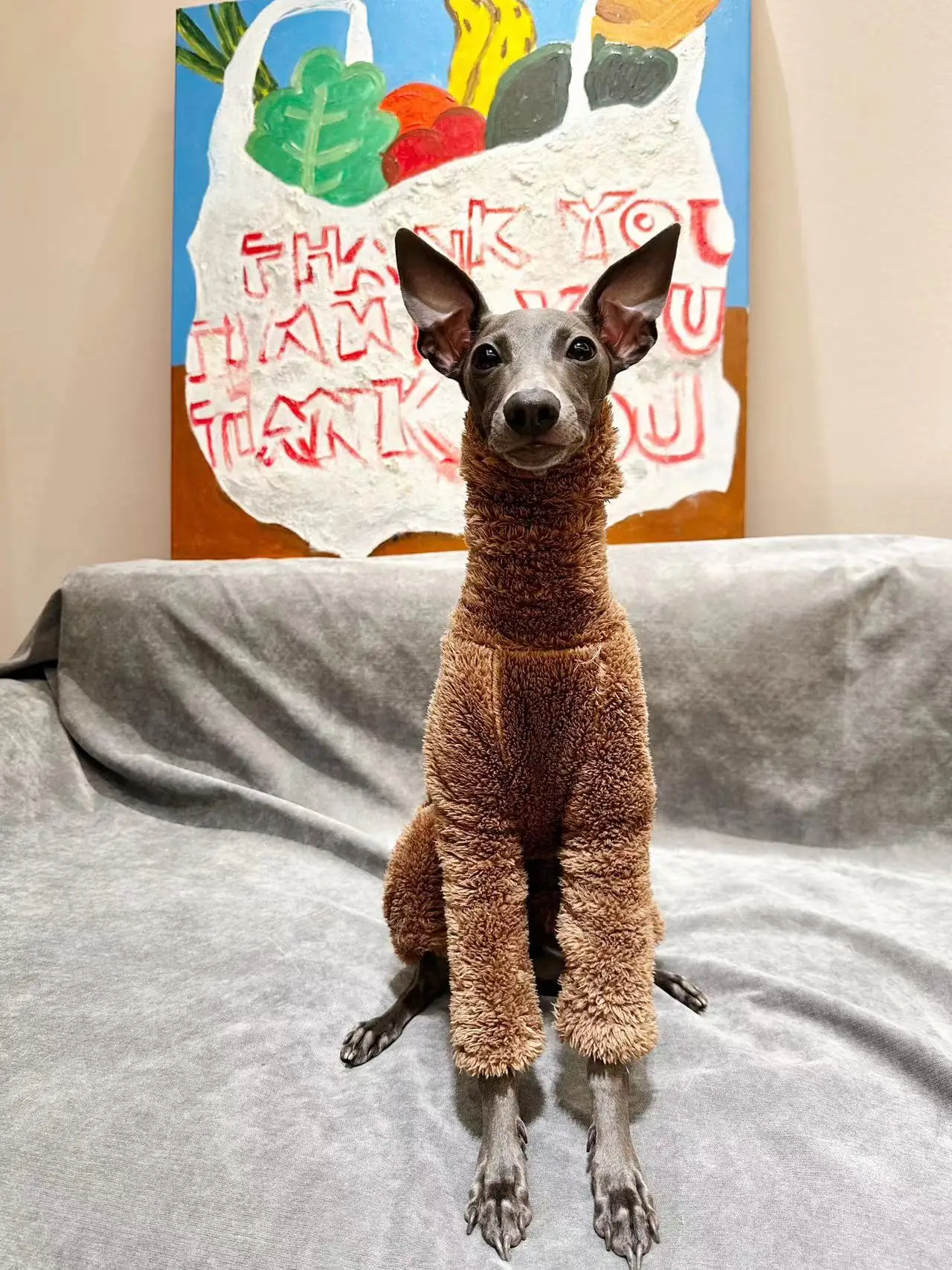 Suéter maravilloso, buena artesanía, le queda perfecto a mi perro. Compré 2 tallas. Ambas son ideales.