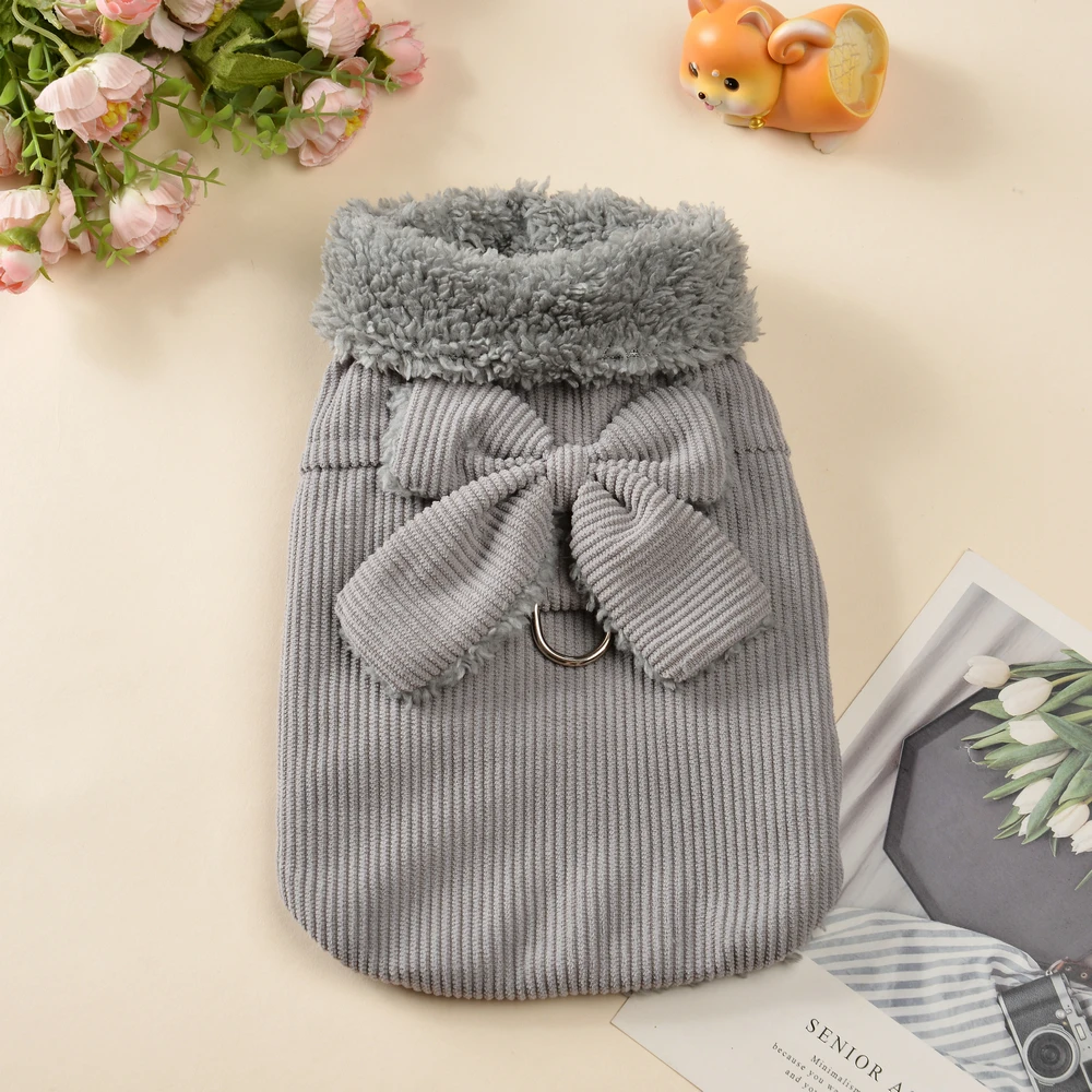 Ropa de invierno para perros pequeños, chaqueta acogedora de lana para cachorros, abrigo con anillo en D, lindo lazo Yorkie, chaleco Bulldog Francés