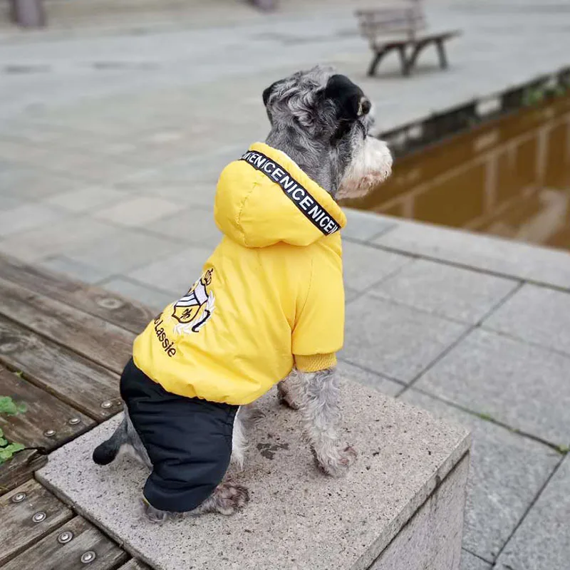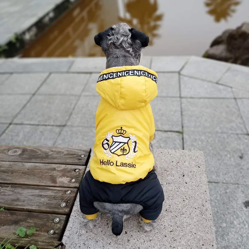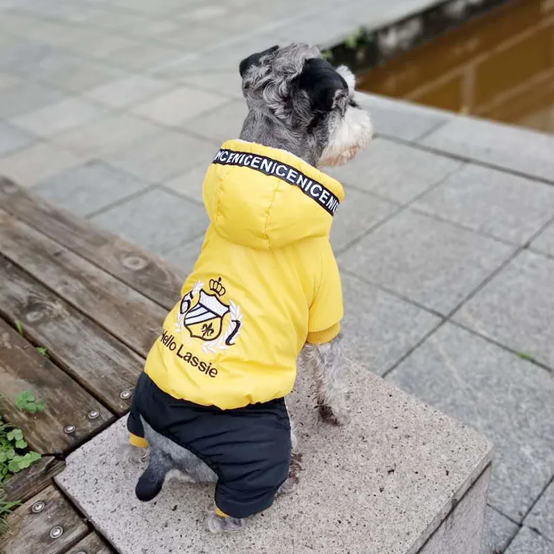 Ropa impermeable de invierno para mascotas para perros pequeños, mono grueso y cálido para perros, traje de esquí cálido de cuatro patas, mono para Yorkshire, Parka con capucha para mascotas 10A