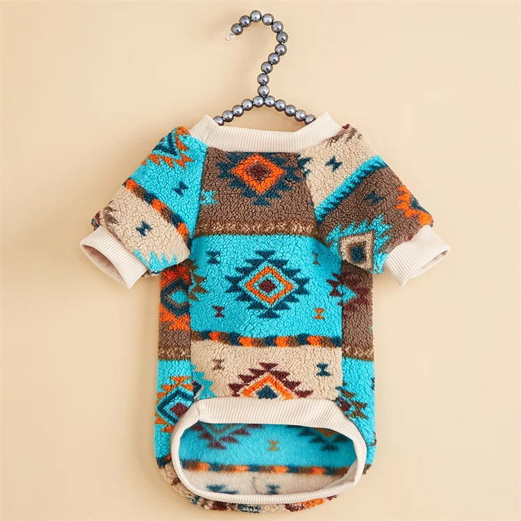 Ropa de invierno para perros pequeños, suéteres cálidos de felpa, patrones geométricos Retro, ropa para perros, cachorro de gato, Chihuahua Yorkies