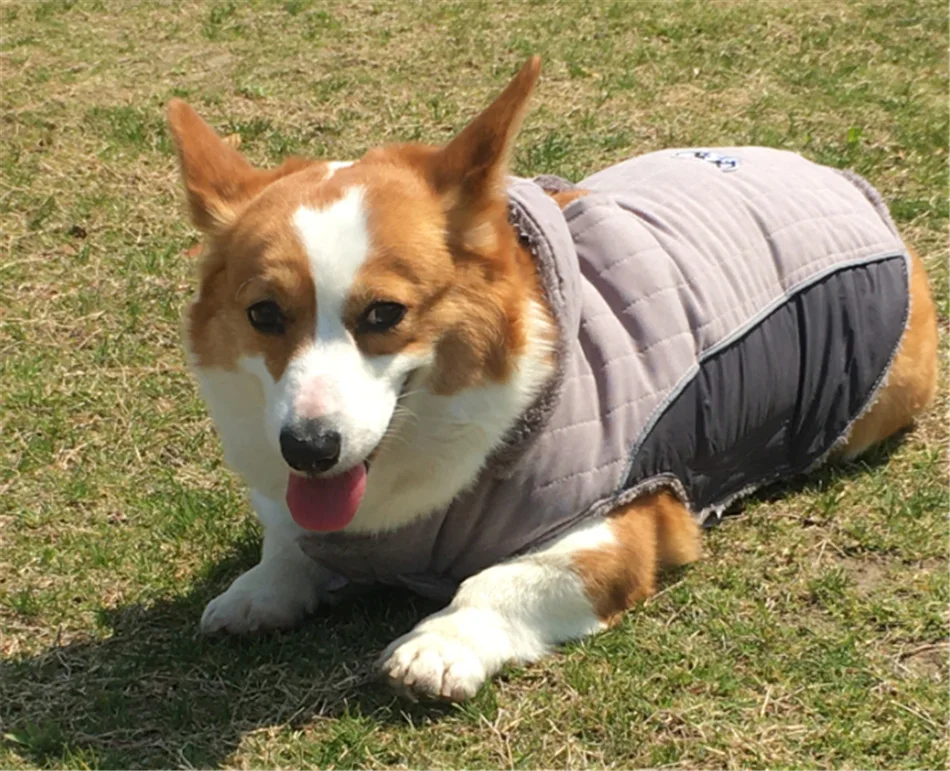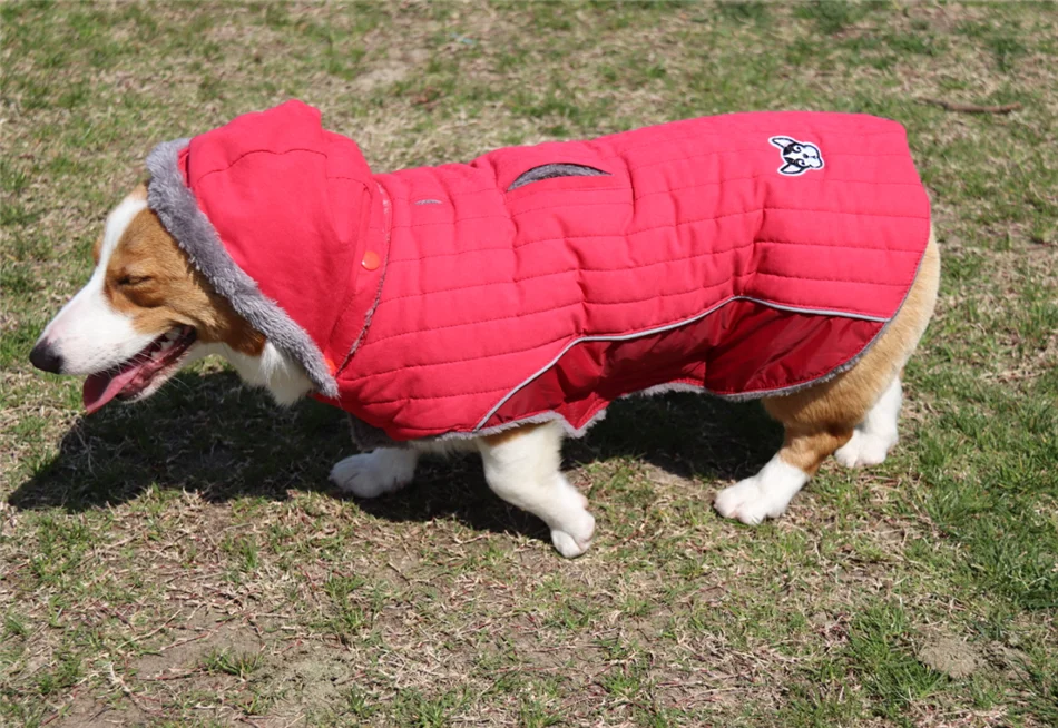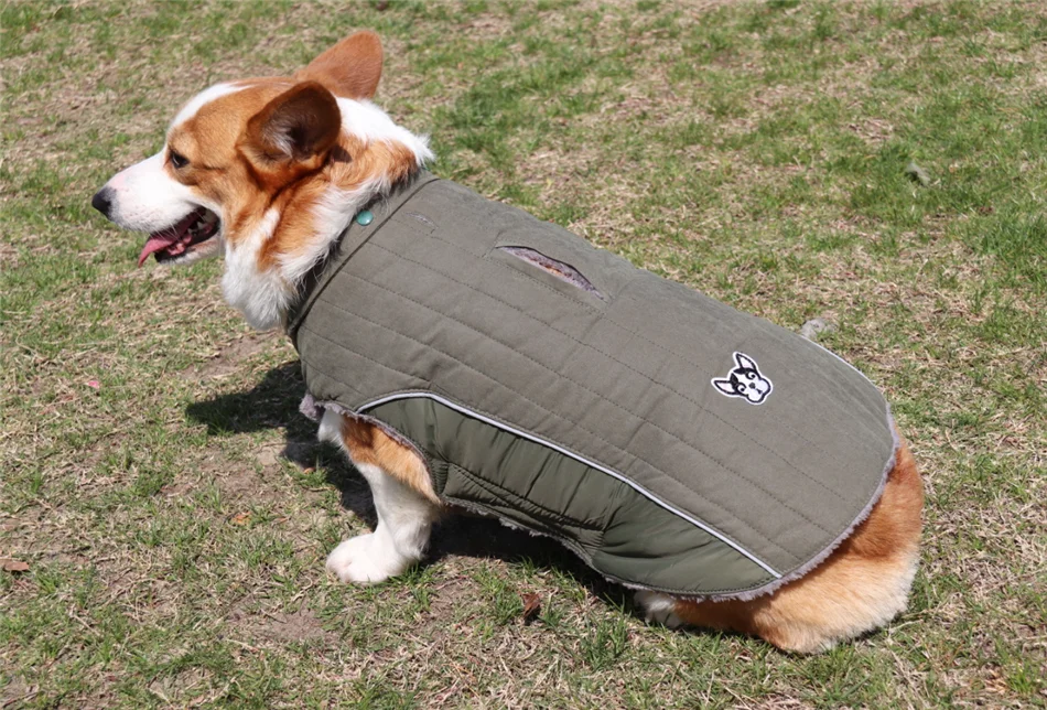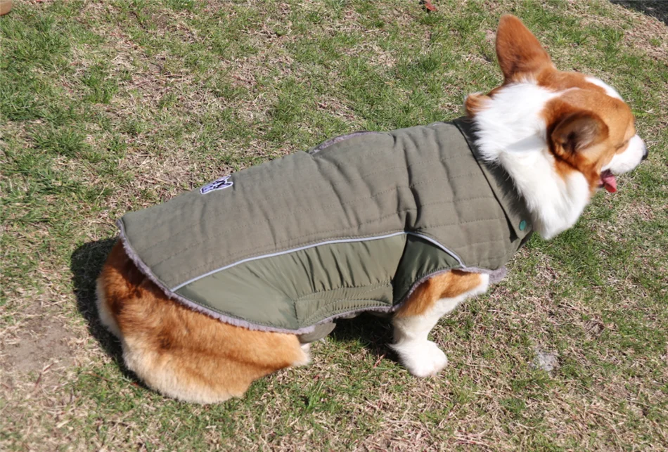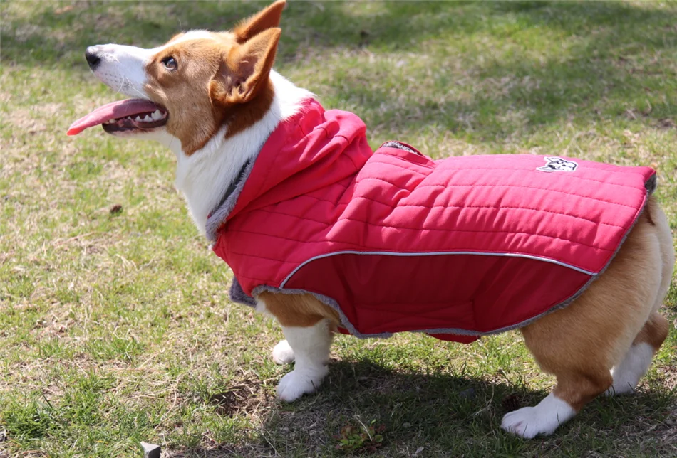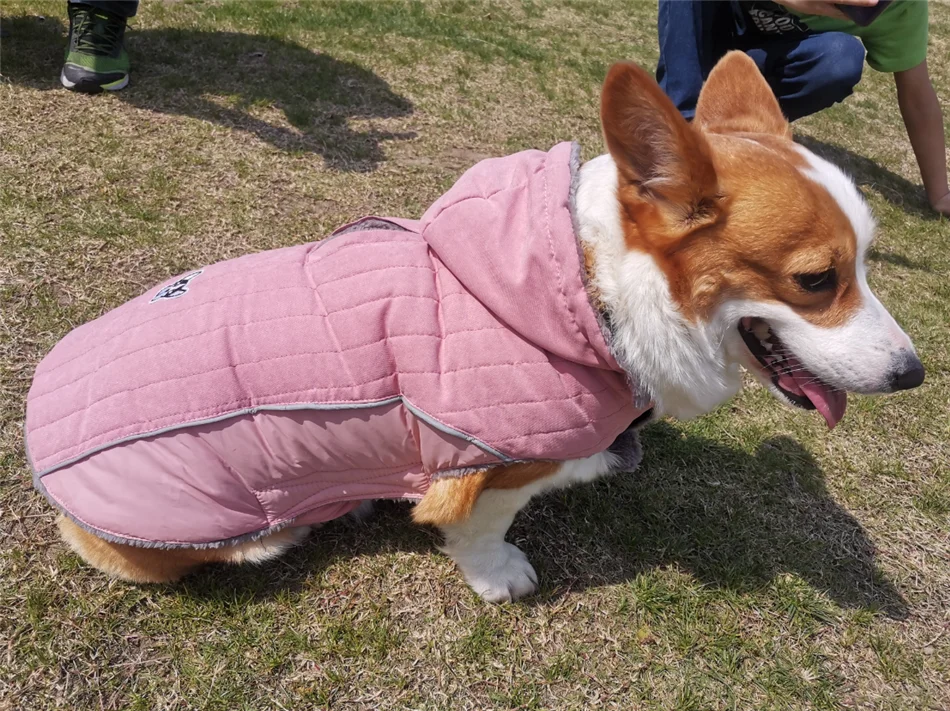 Genial, le va perfecto, le viene un poco ancho pero mejor, así tiene libertad de movimiento. Las otras chaquetas son más largas y se le acaban metiendo por debajo de la cola , pero esta el largo es perfecto. No la he probado en lluvia y no sé si es impermeable, pero tiene pelito por dentro, cierra con velcros y solo tiene que levantar una pata, genial para perros con problemas articulares o que se agobian cuando les pones la chaqueta