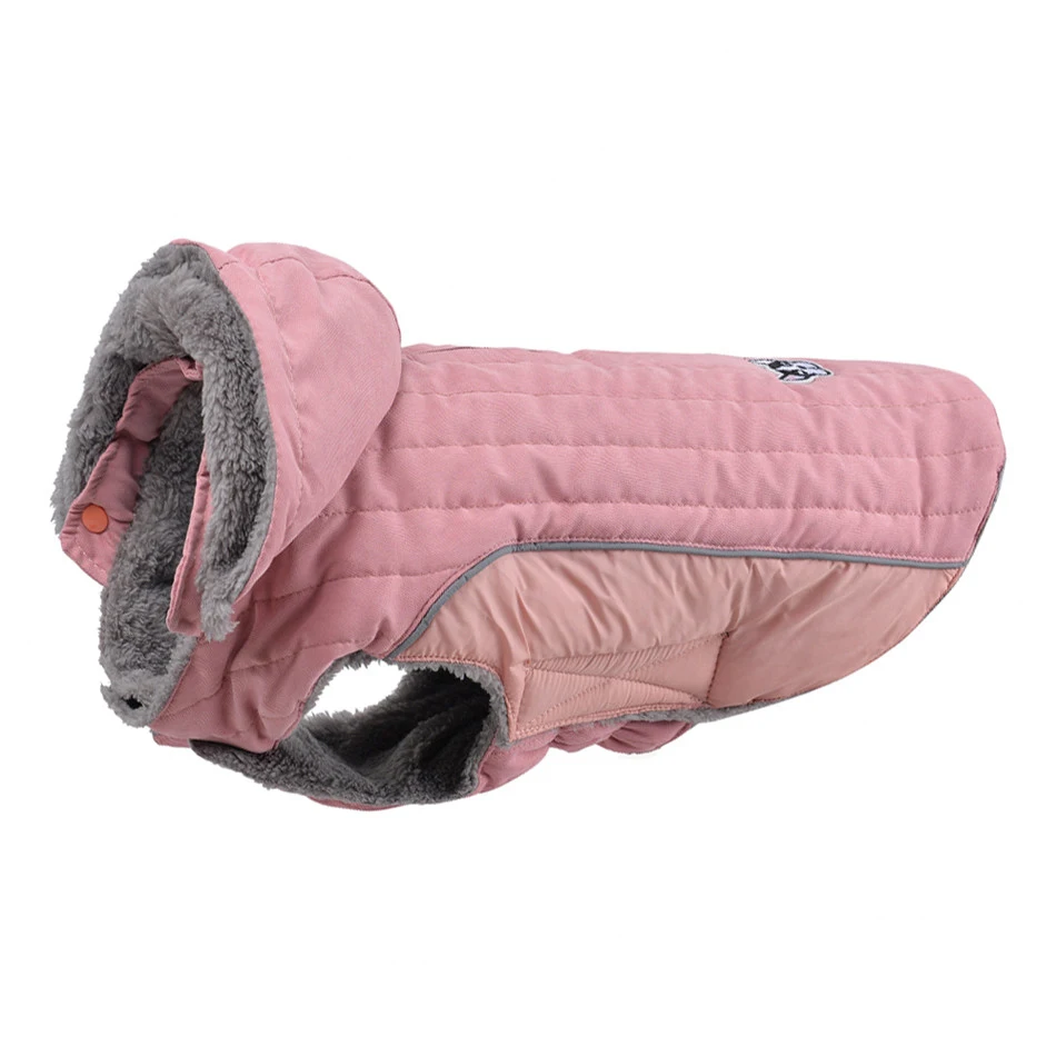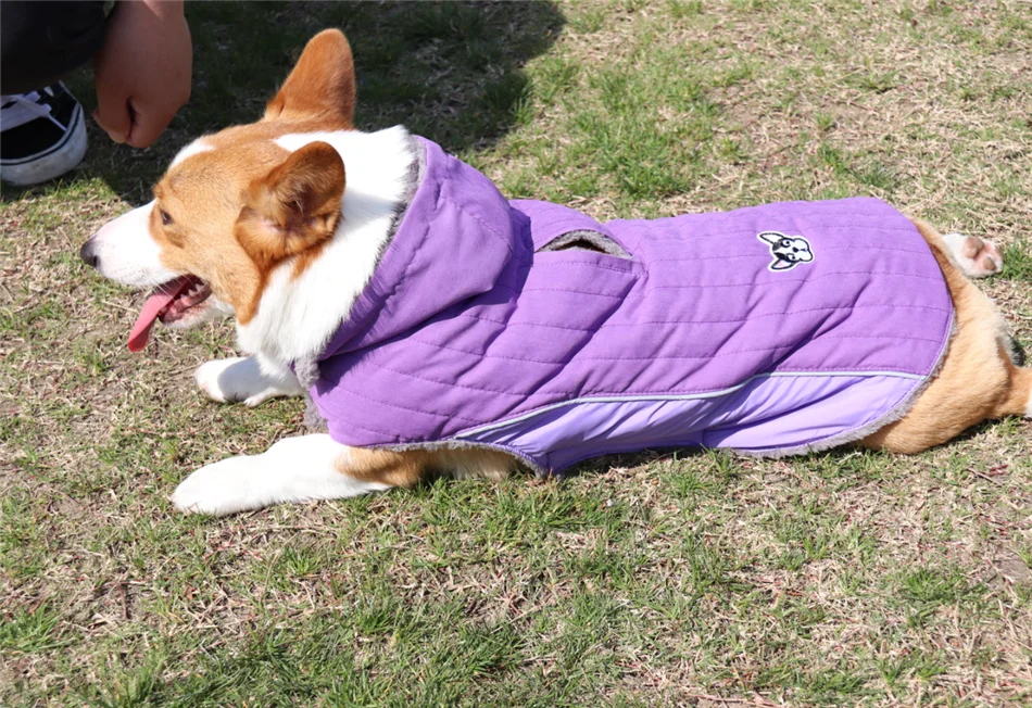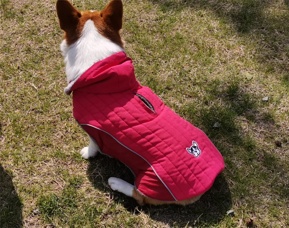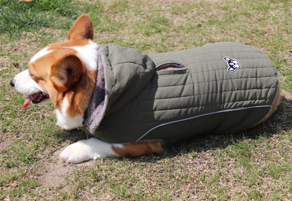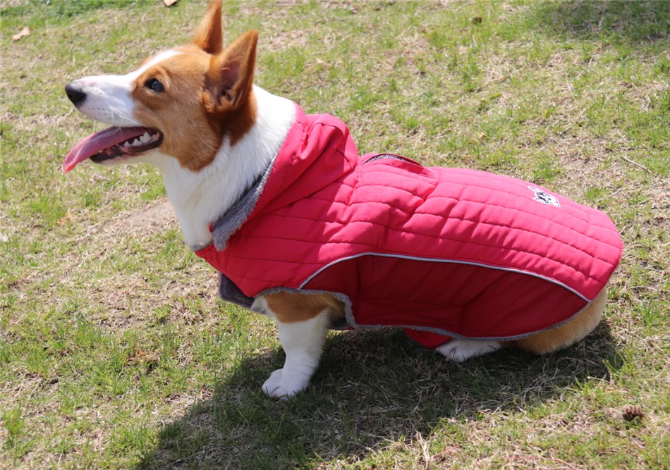 Genial, le va perfecto, le viene un poco ancho pero mejor, así tiene libertad de movimiento. Las otras chaquetas son más largas y se le acaban metiendo por debajo de la cola , pero esta el largo es perfecto. No la he probado en lluvia y no sé si es impermeable, pero tiene pelito por dentro, cierra con velcros y solo tiene que levantar una pata, genial para perros con problemas articulares o que se agobian cuando les pones la chaqueta