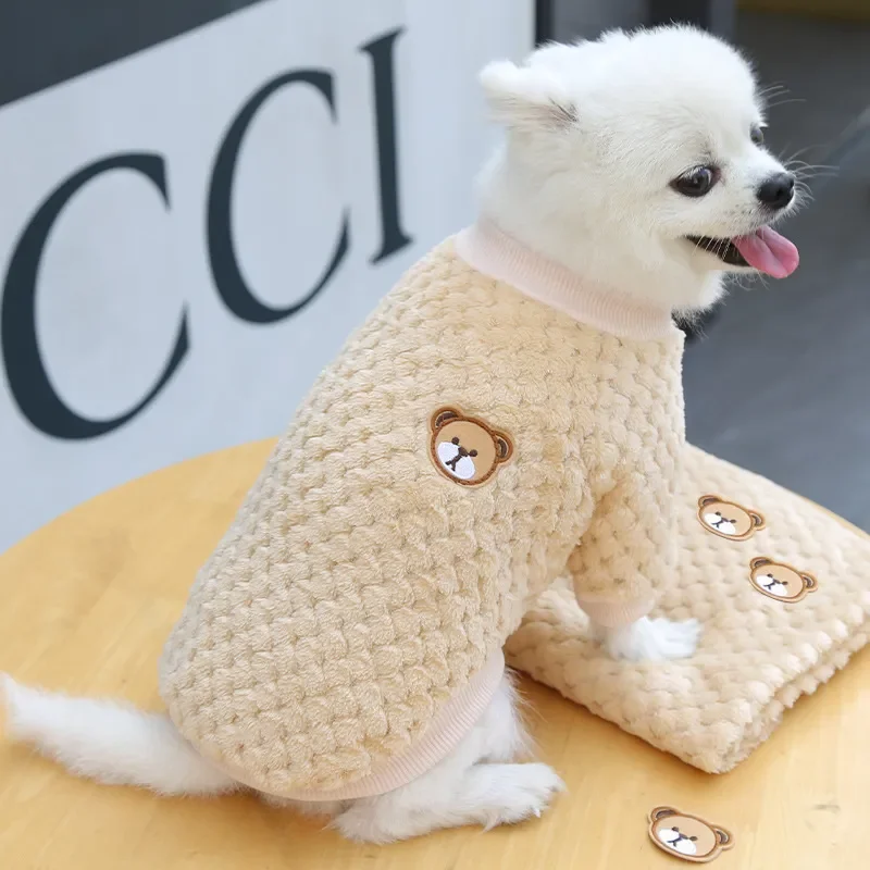 Ropa de lana cálida para mascotas, abrigo con estampado bonito para perros pequeños y medianos, camisa para gatos, chaqueta de peluche, Bulldog Francés, Chihuahua, traje de invierno, novedad de 2024