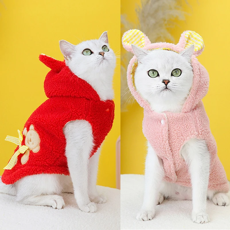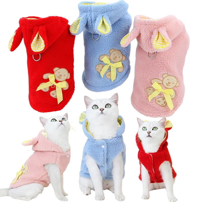 Ropa de lana para gatos, sudaderas con capucha para perros pequeños, gatitos, Bulldog francés, Shih Tzu, chaleco para gatos Sphynx, chaqueta para cachorros, accesorios para gatos