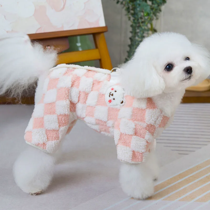 Ropa de lana para perros, mono cálido de invierno para mascotas, pijamas con anillo en D de 4 patas, traje para perros pequeños y medianos, mono para cachorros chihuahua XL