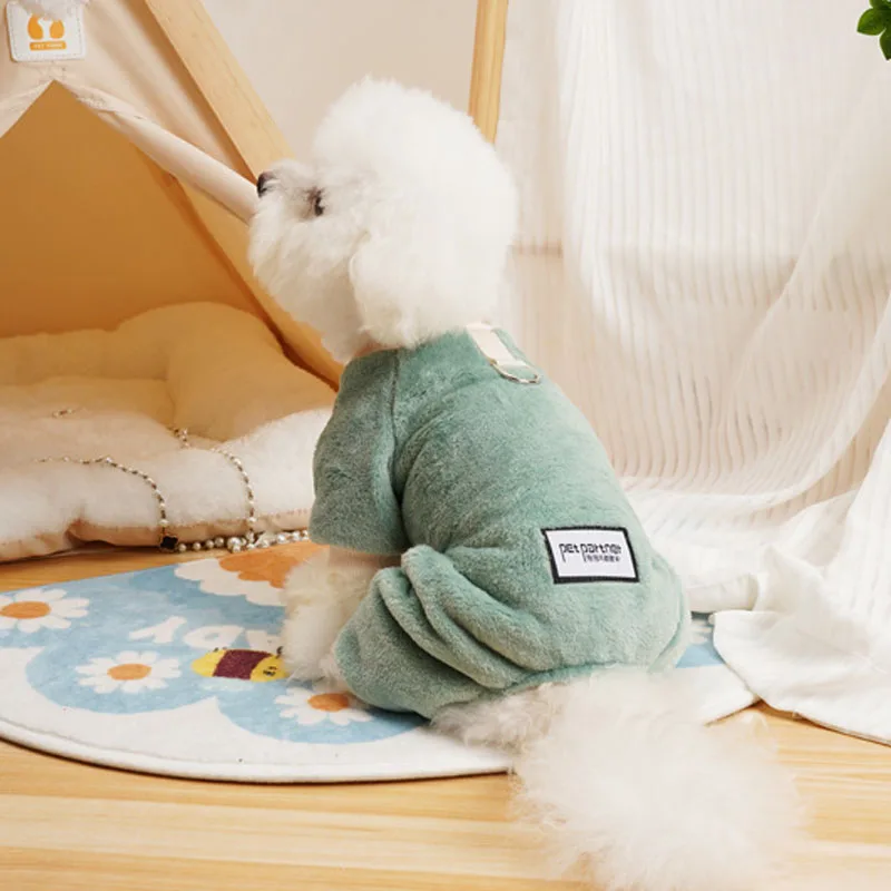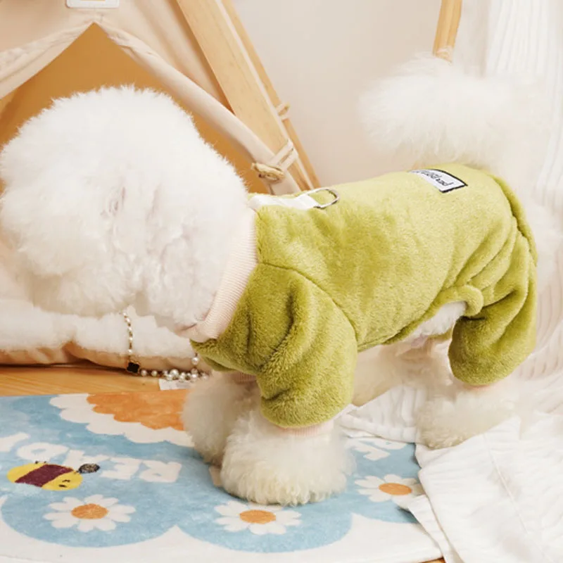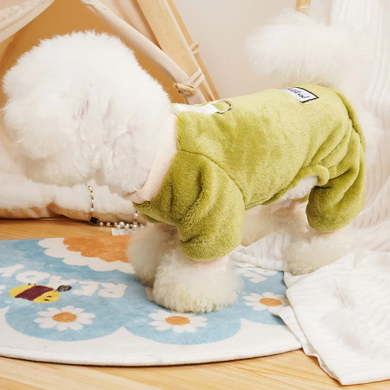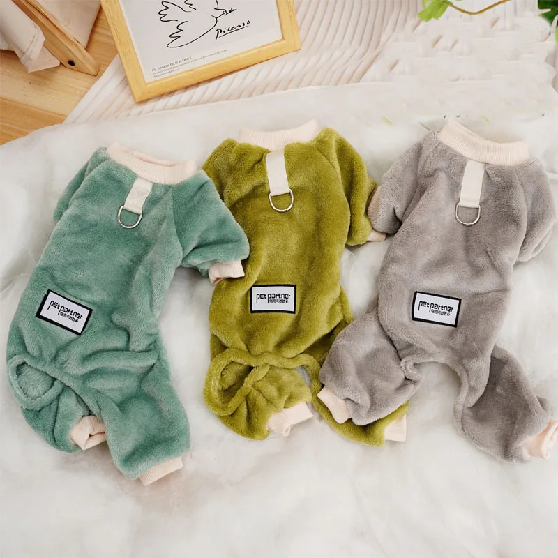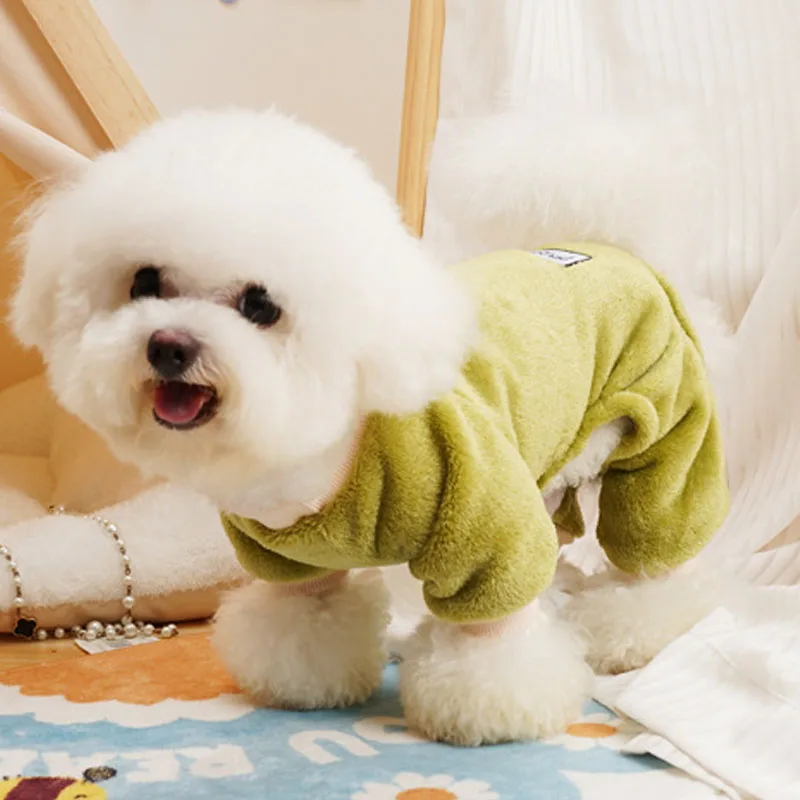 Mono cálido de lana para perros, pijamas, sudaderas con capucha de invierno, ropa para perros, mono verde y gris para perros pequeños, mono para cachorros