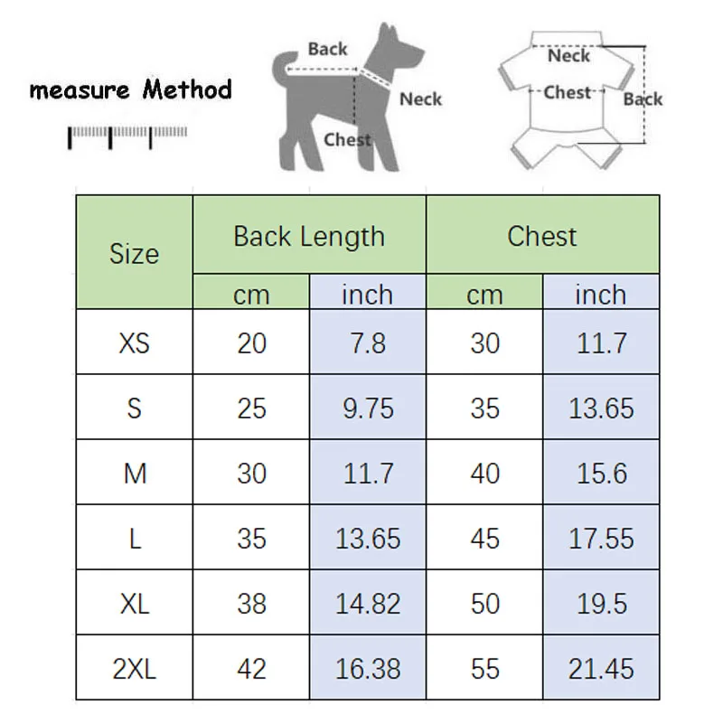 Espesar, el tamaño de la ropa es más grande de 3 a 4 cm de lo que mide el tamaño del perro. Si está entre 2 tamaños, elija el tamaño grande.
