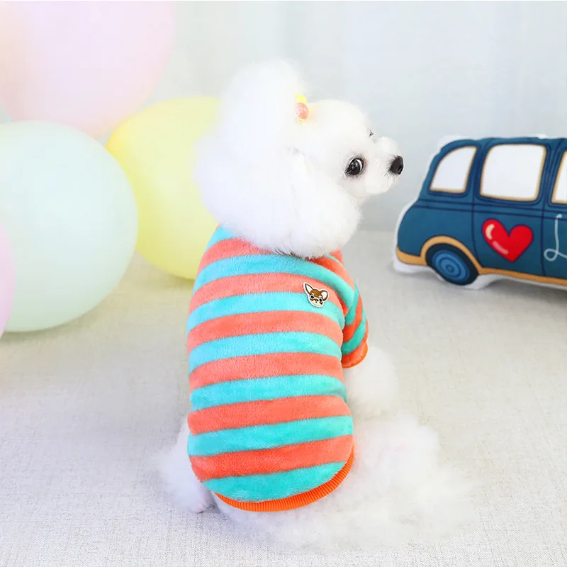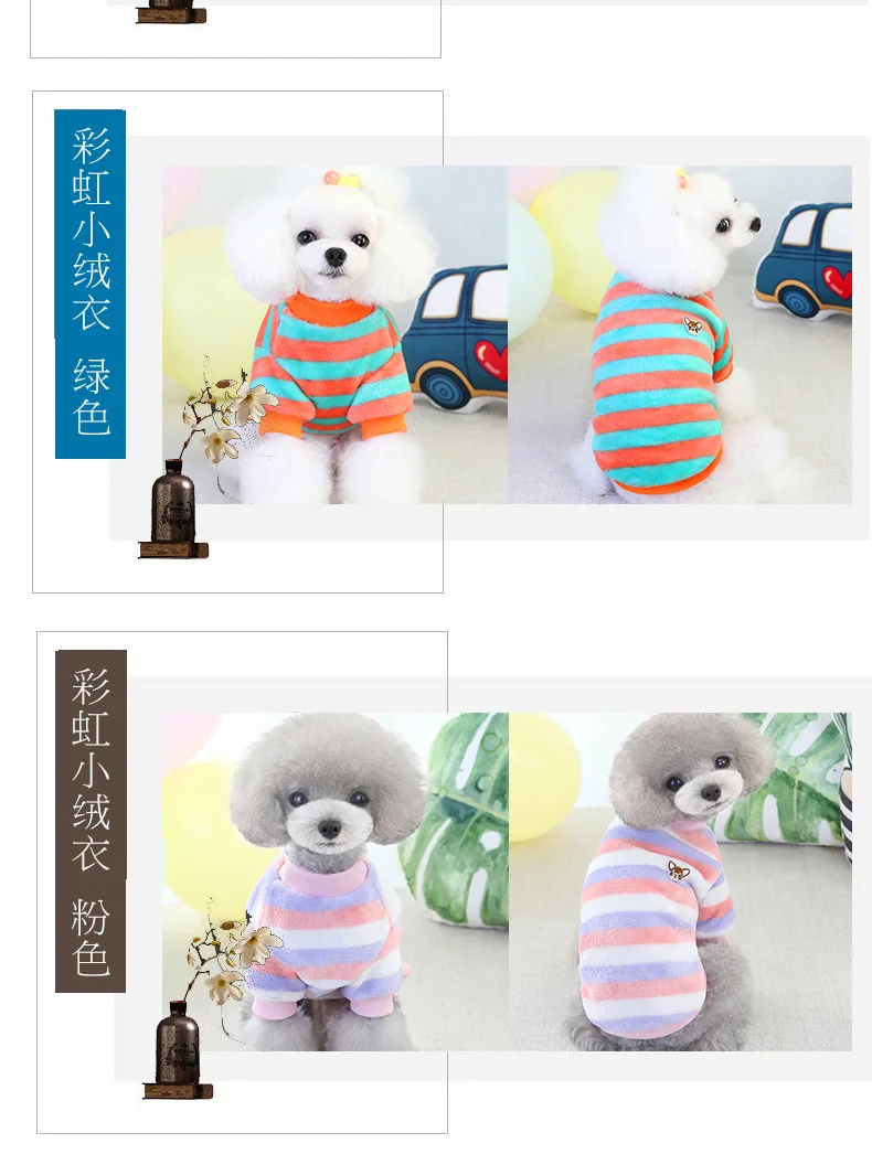 Ropa suave de franela para perros pequeños, chaleco cálido de invierno para perros, ropa para cachorros a rayas de arcoíris, abrigo para Chihuahua Poodle Shih Tzu 35